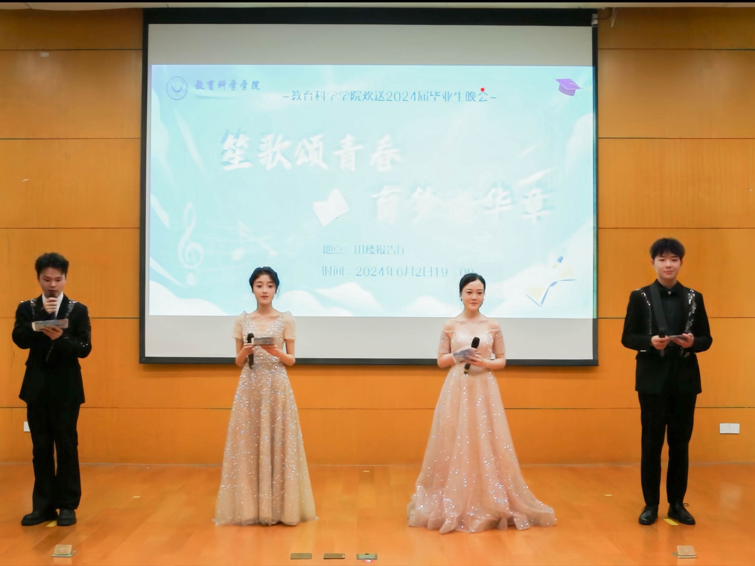 毕业生晚会在教科学子的期待中拉开帷幕,晚会由“逐梦山海恰相逢”、“风采昭彰度年华”和“今朝启程扬新帆”三个篇章构成,新颖别致的十个节目为毕业生送上了真挚的祝福。
