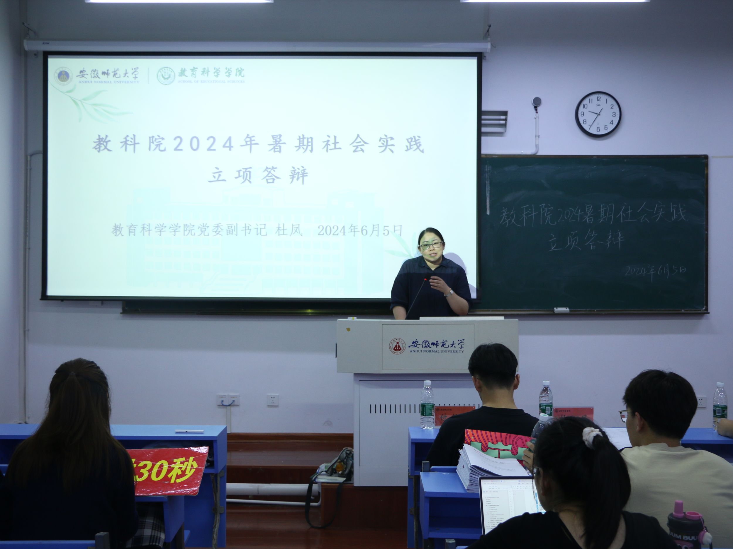 杜凤肯定了每个实践队伍对本次暑期社会实践活动的准备付出的努力。她指出,此次答辩会是各个团队展示自我,相互交流的平台。杜凤强调,暑期社会实践要与各专业紧密结合,真正在实践中增长才干,提升专业能力。暑期社会实践是认知职场,探索职场的重要途径,期待教科学子能在社会实践中有所成长,有所收获。
