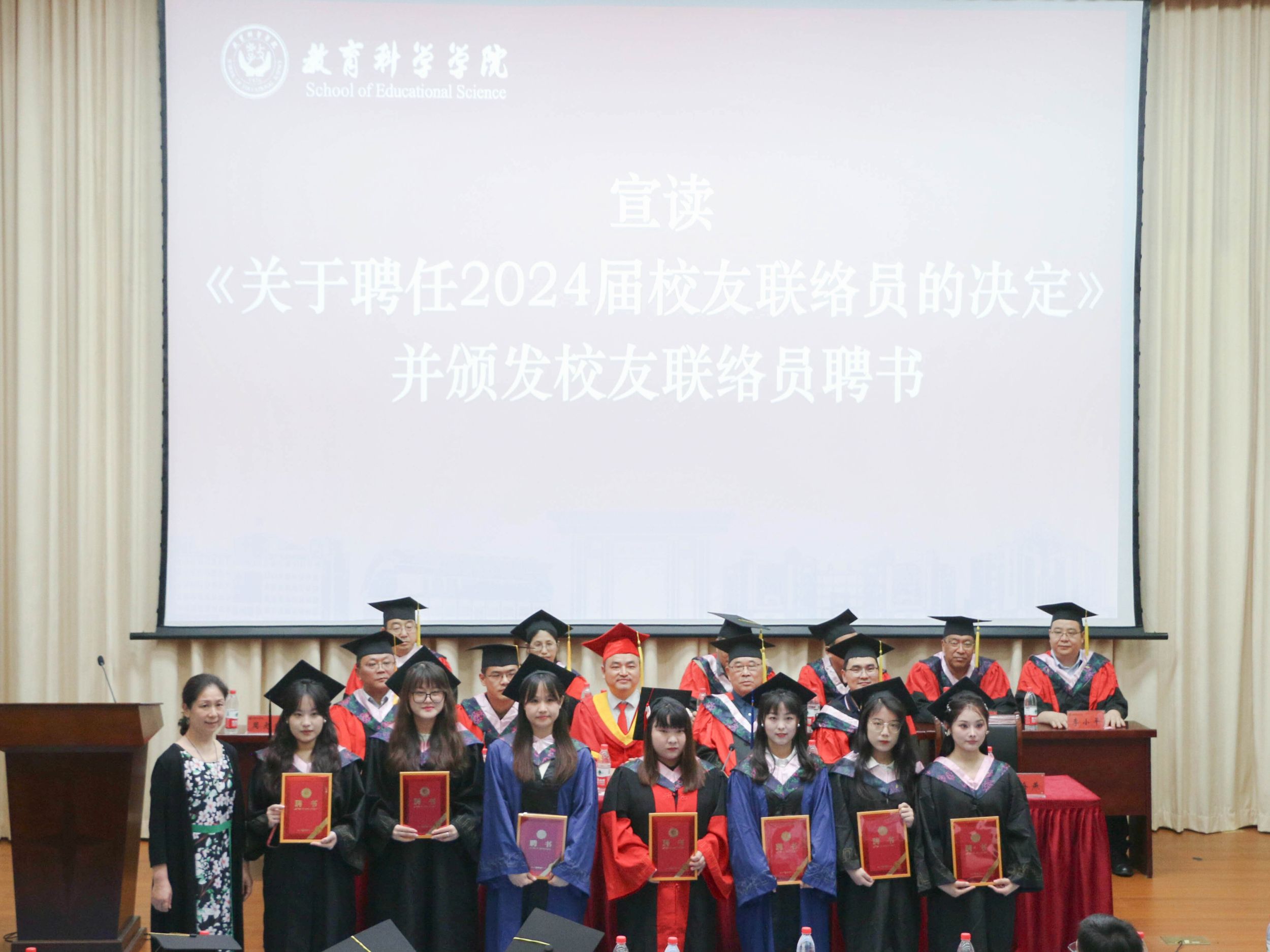 随后,副经理何海燕为员工联络员代表颁发聘书。各位老师为毕业生拨穗并合影留念。