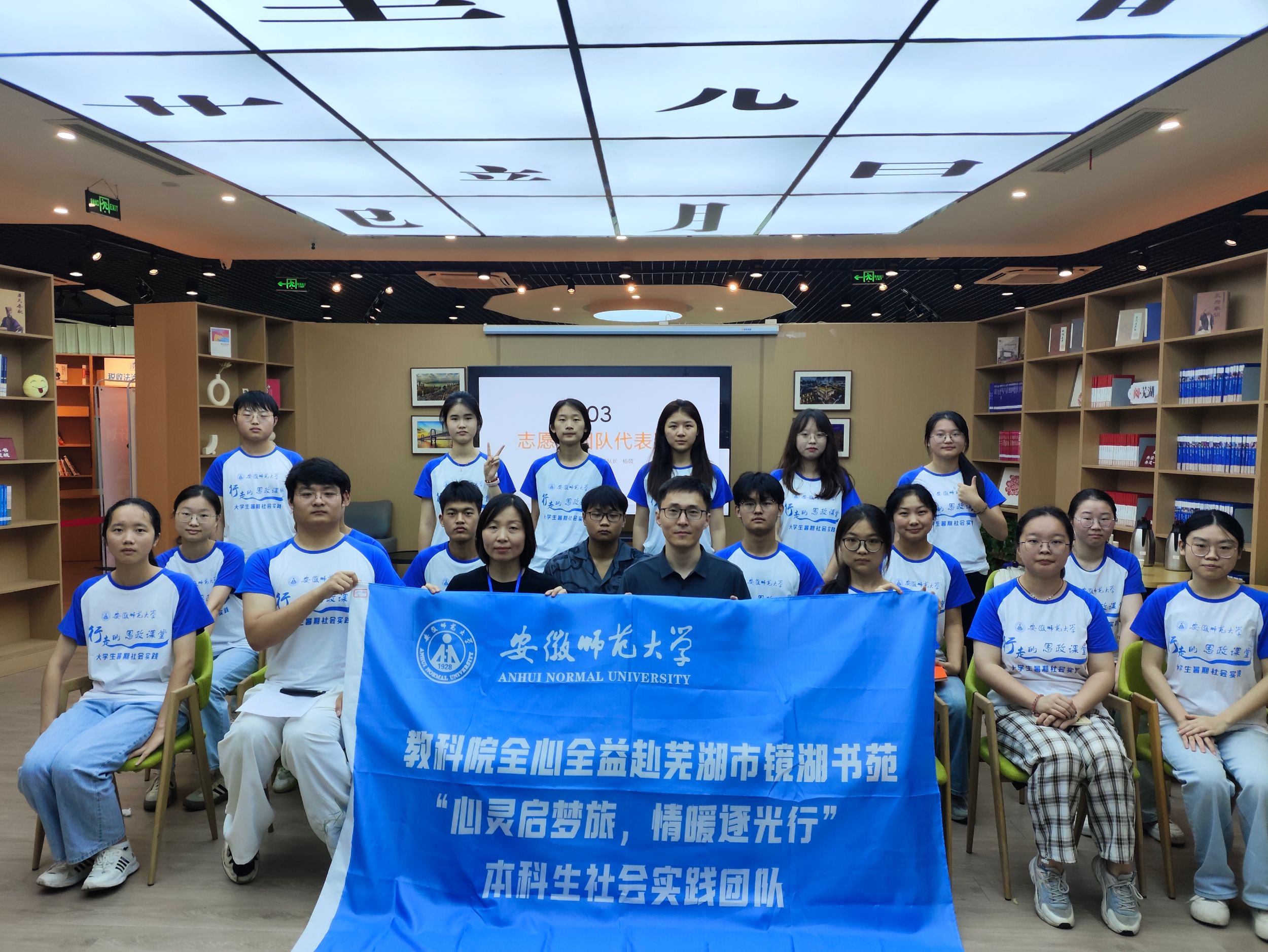 金剑与盛木花共同宣布本次暑期社会实践活动正式开班,全体成员进行合影留念。书苑与实践团队的合作正式开始标志着同学们即将踏上一段充满挑战与收获旅程。