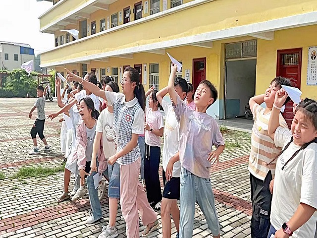 伴着孩子们的欢笑声,活动进入下一环节。为了让孩子们意识到情感倾听和表达的重要性,关注自我心理健康状态,团队实践队员采用“放飞我的纸飞机”游戏的形式,通过做游戏轻松的方式促进孩子们之间的交流与理解,同时增加他们之间的集体归属感。