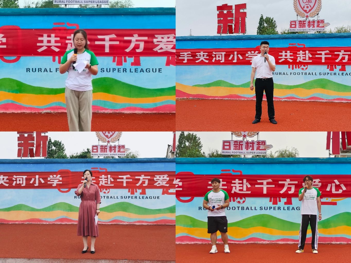 10日上午,队伍于夹河小学操场举办暑期开班仪式,相关媒体记者到场记录及采访。仪式由队长汪倩主持,暑托班所有教师与员工参与。仪式初,汪倩向师生介绍本次公益活动的队伍构成,并结合夹河小学实际参与人数进行详细介绍。开班仪式中,队员分别进行了才艺表演、队长队员发言、现场教学用具的捐赠与合影。最后,镇党委副书记俞韵文发表感悟并宣布本次公益暑托班顺利开班,柯成进行总结性发言并预祝本期暑托班顺利举办。