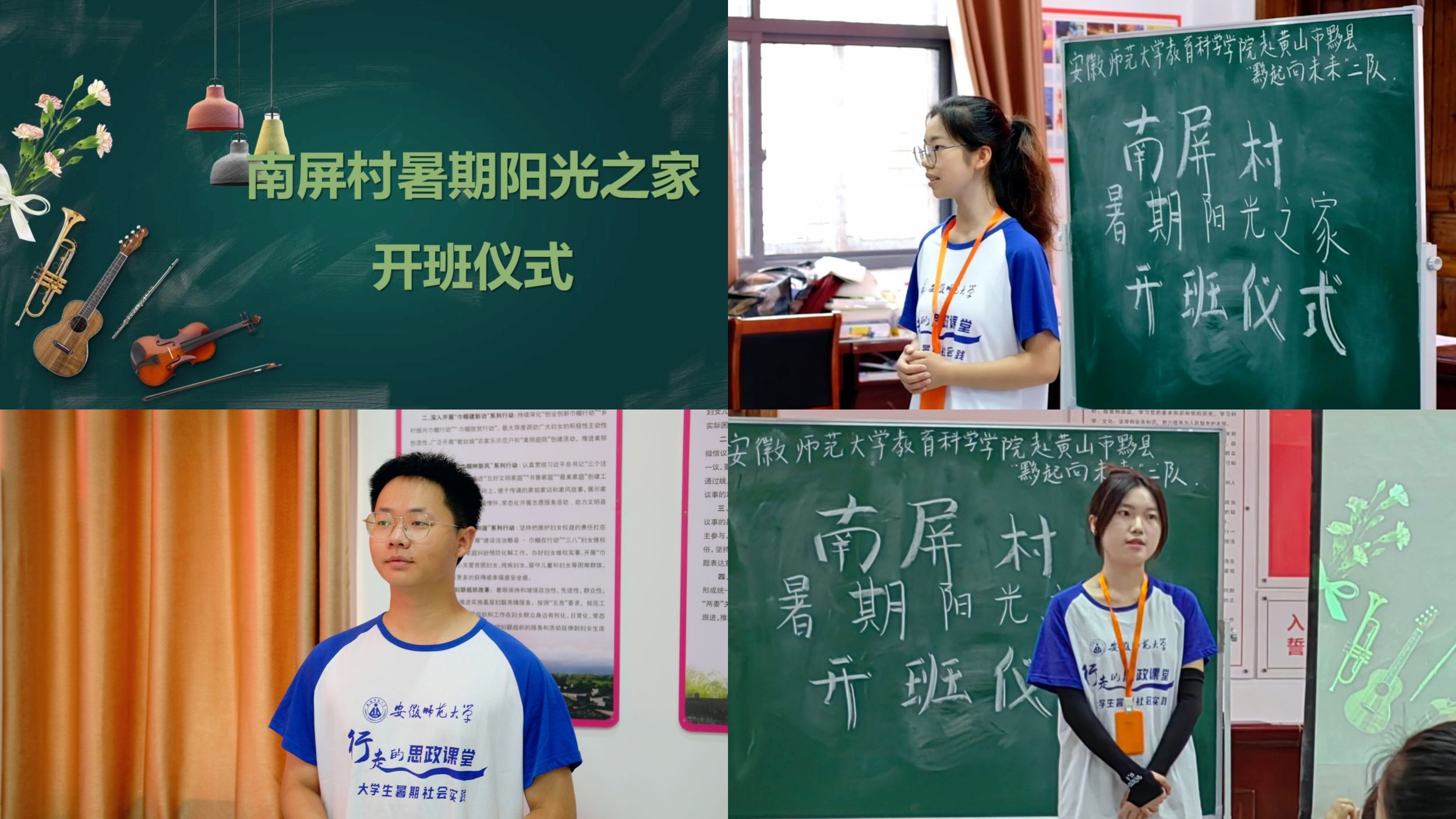 7月11日,团队于南屏村村委会“阳光之家”活动室举办开营仪式。仪式由教学组组长程振宇主持,他介绍了团队的由来,接着组织团队成员们依次进行自我介绍,队长俞慧进行总结发言,宣布南屏村暑期活动中心第九期影像南屏“阳光之家”正式开营。