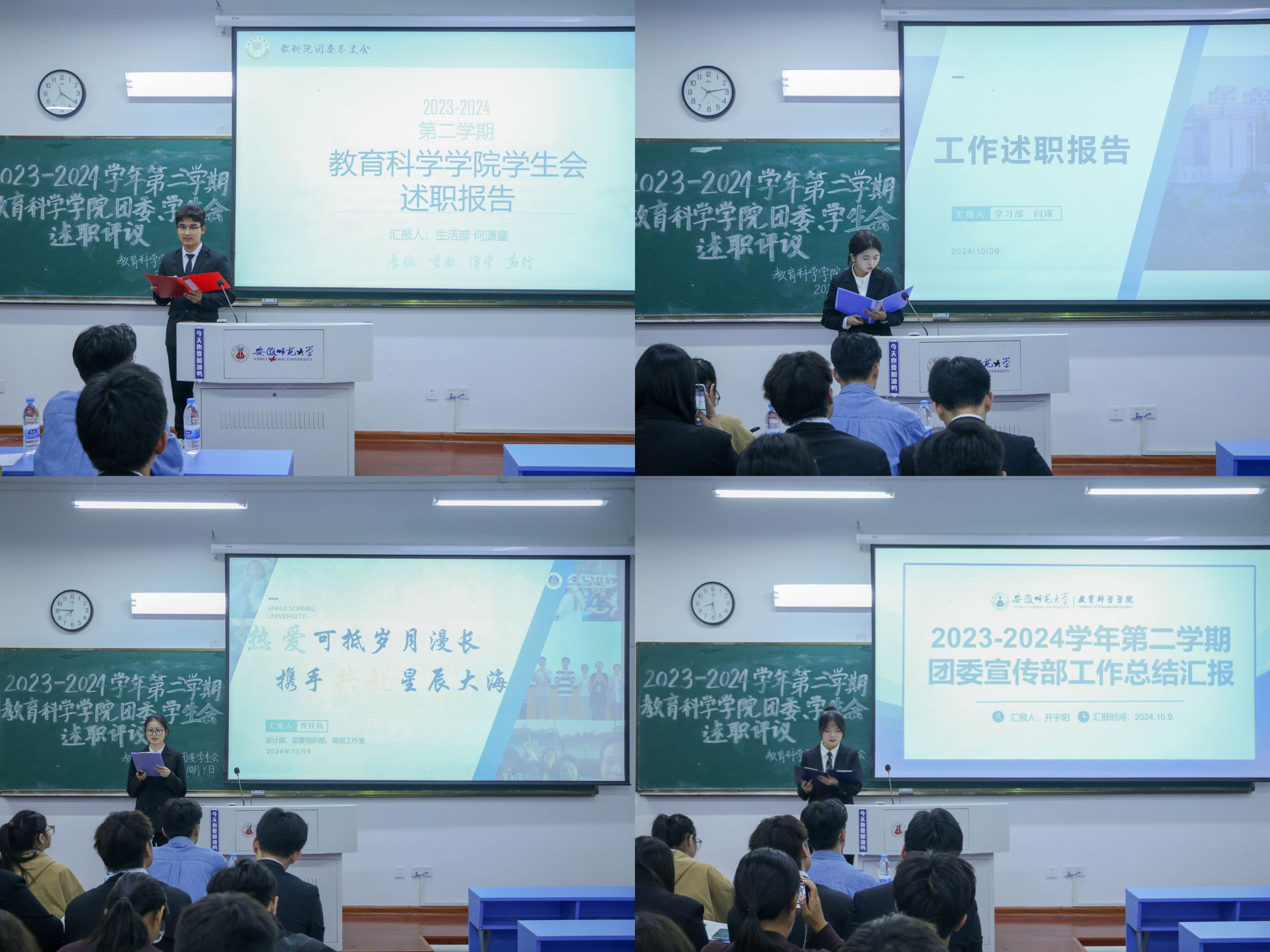 本次汇报会旨在对上一学年教科院团委、员工会的工作成果和经验进行交流总结与改进,以便更好地进行新学期的工作任务,在实践中进步,在前进中成长。新的学期中,院团委和员工会全体仍将携手共进,以更加热情激扬的精神阔步新征程,昂首向未来。