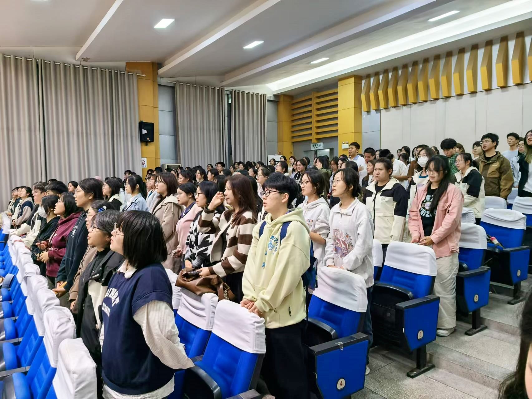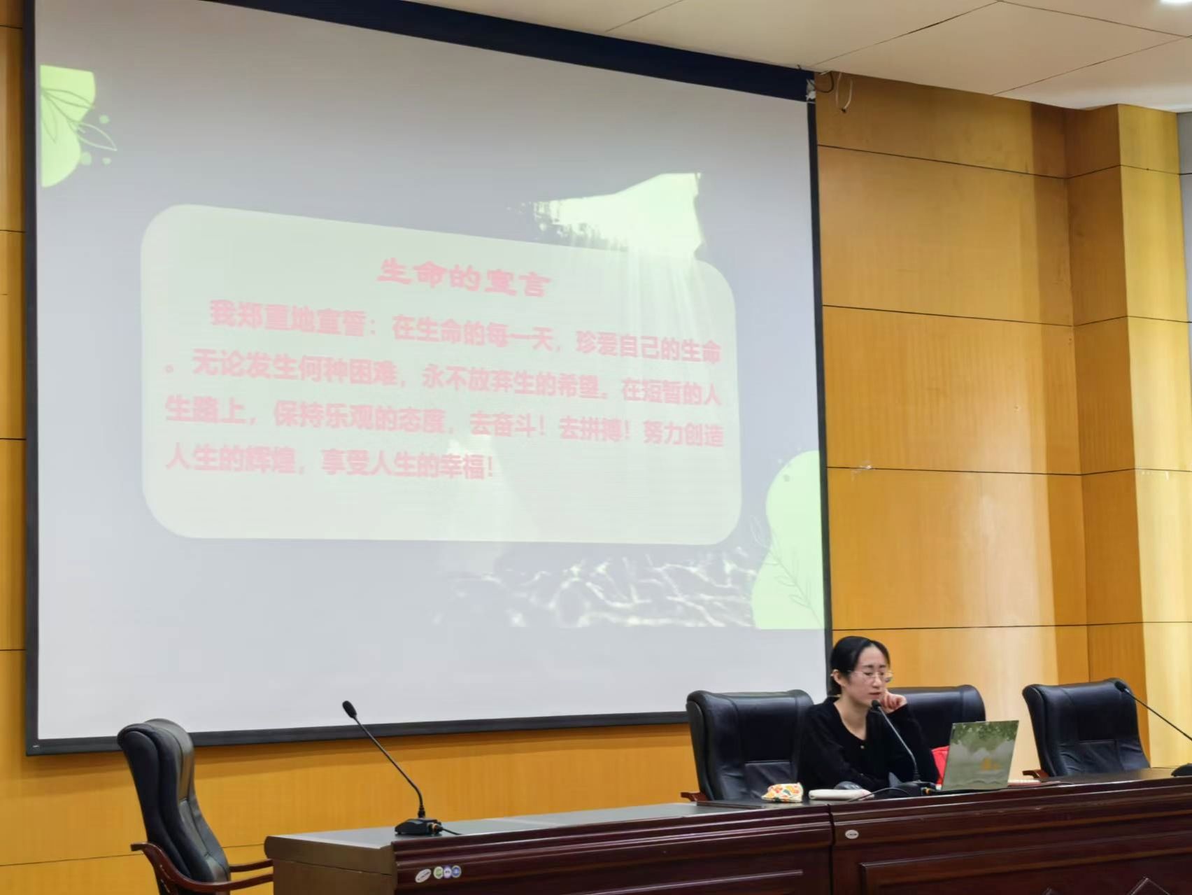 讲座最后,全体同学起立,为生命宣誓,为心理护航,做自己心理健康教育的第一责任人。