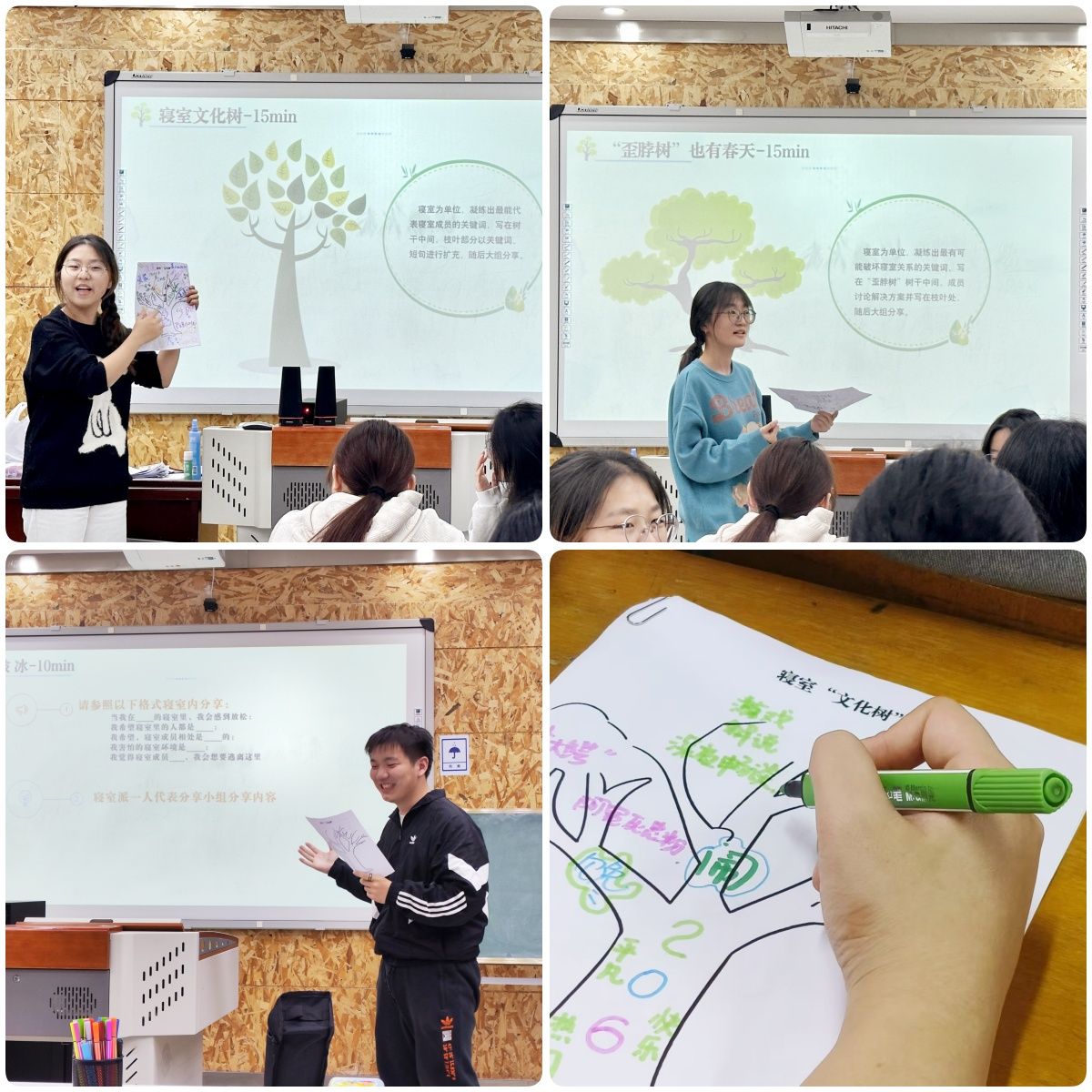“六个文明”教育实践专项活动主题班会结合寝室文化建设团辅展开,分为“破冰”“分享”“讨论”与“总结”等环节。寝室文化建设板块,金凤仙通过“寝室文化树”“寝室歪脖树”等团辅设计,引导员工聚焦理想的寝室氛围、寝室文化关键词、寝室矛盾集中点、寝室值班制度等方面进行讨论和交流,增进寝室成员内部交流,强化寝室问题解决思维,针对可能出现的寝室矛盾防微杜渐。“六个文明”教育实践专项活动,金凤仙结合公司相关文件与案例,针对六个文明文件制度、公司星级宿舍评选进行了全面解读,鼓励员工立足寝室最小单元格,从自我做起,现在做起,从小事做起,遵守校规校纪,规范文明行为,形成良好习惯,努力成为有道德品质、有文明修养的时代新人。
