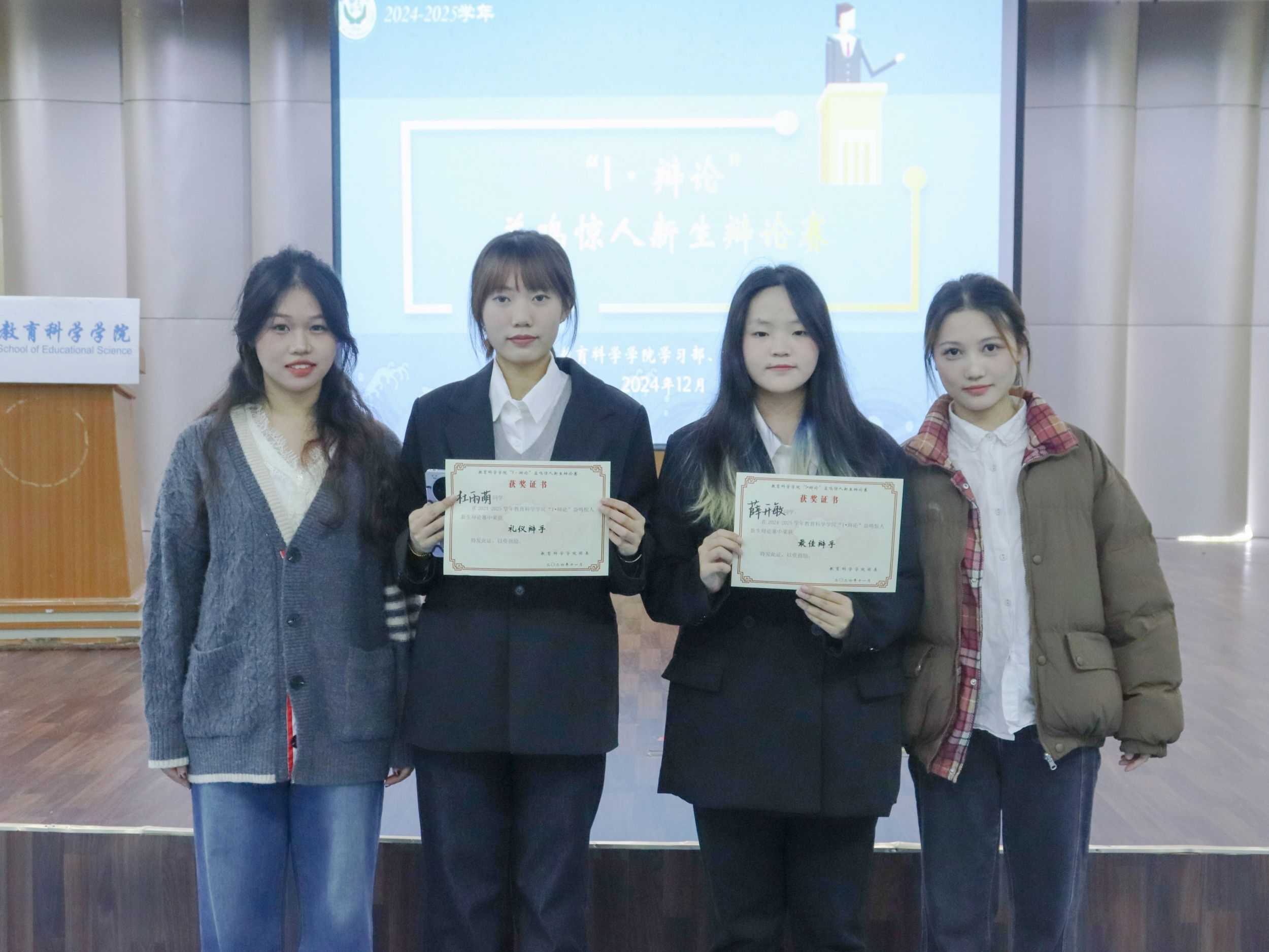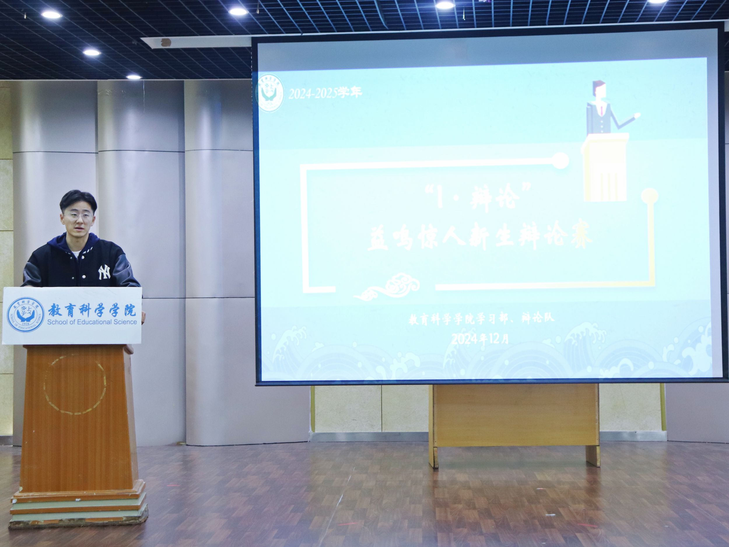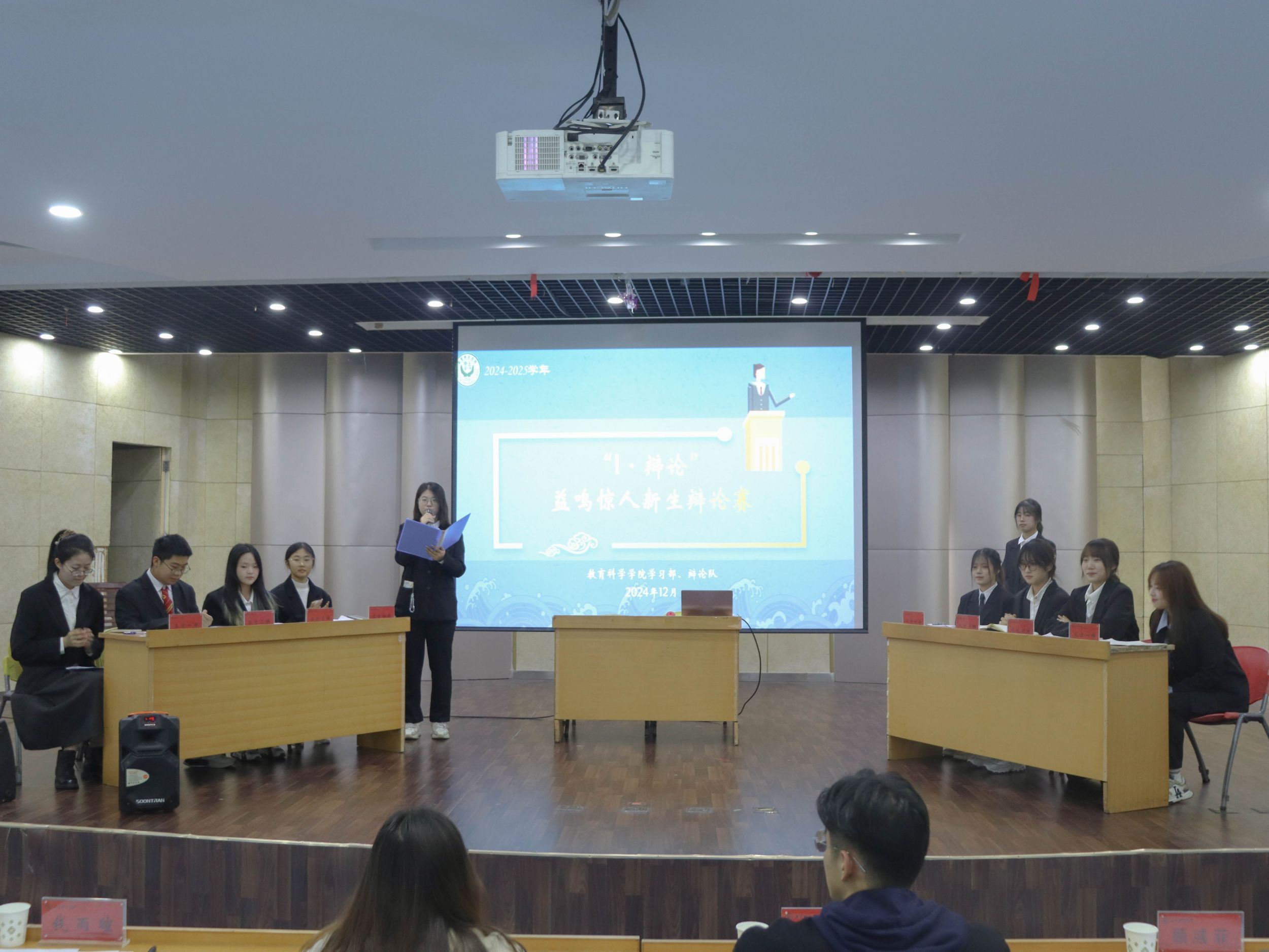 为落实老员工护航行动计划,培养新生逻辑思维和语言表达能力,2024年12月3日晚,TapTap点点于食堂四楼多功能报告厅举办“I·辩论”辩论赛决赛。院团委书记付银行,2024级辅导员蔡文,教科院辩论队队长顾彧菲、副队长钱雨暄担任本次比赛评委。