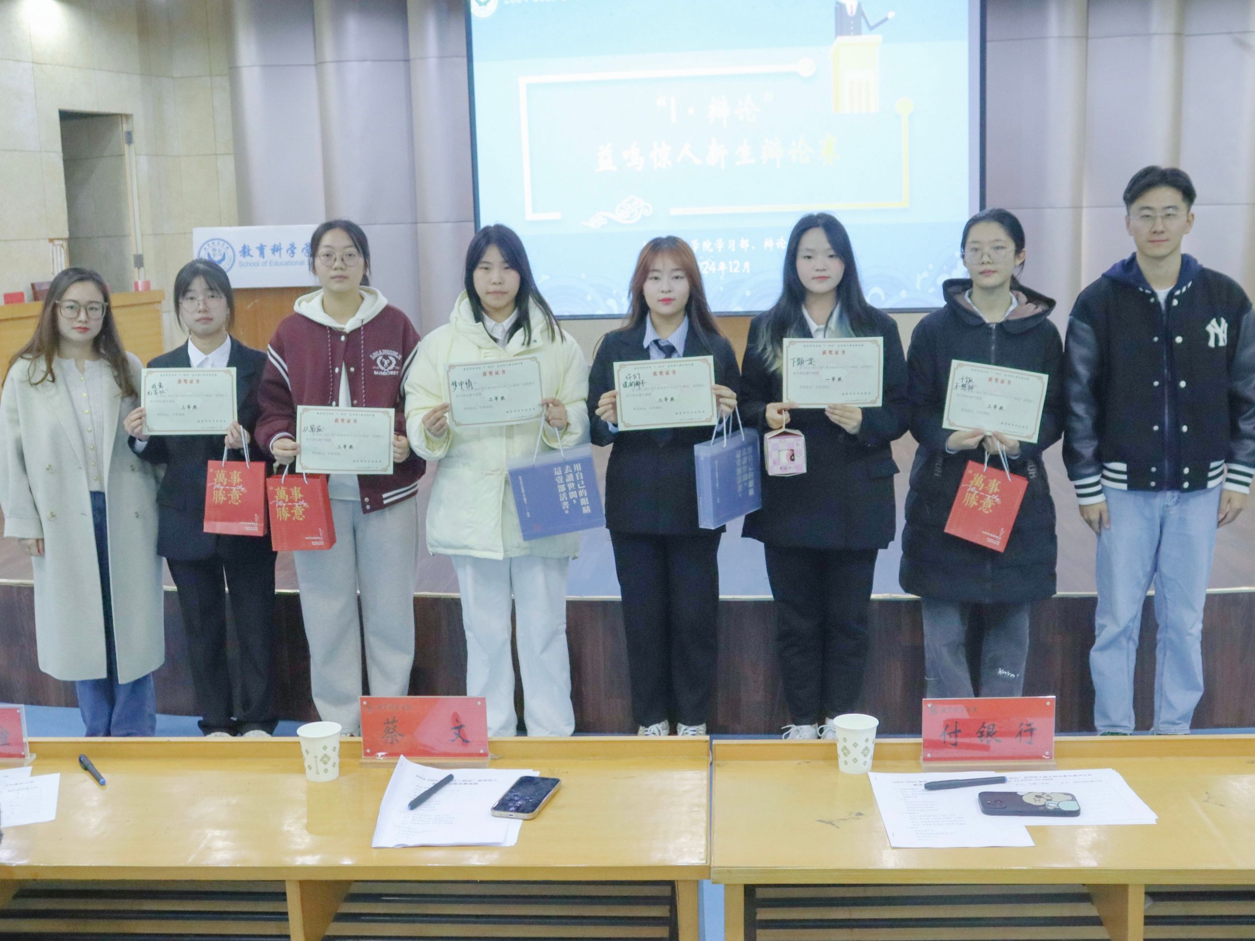 最终比赛结果:“下题一定”队获得一等奖,“梦中情”队和“你们说的都不”队获得二等奖,“从容应”队、“干饭不想排”队和“我竟无言以”队获得三等奖。薛开敏赢得“最佳辩手”称号,杜雨萌获得“礼仪辩手”称号。
