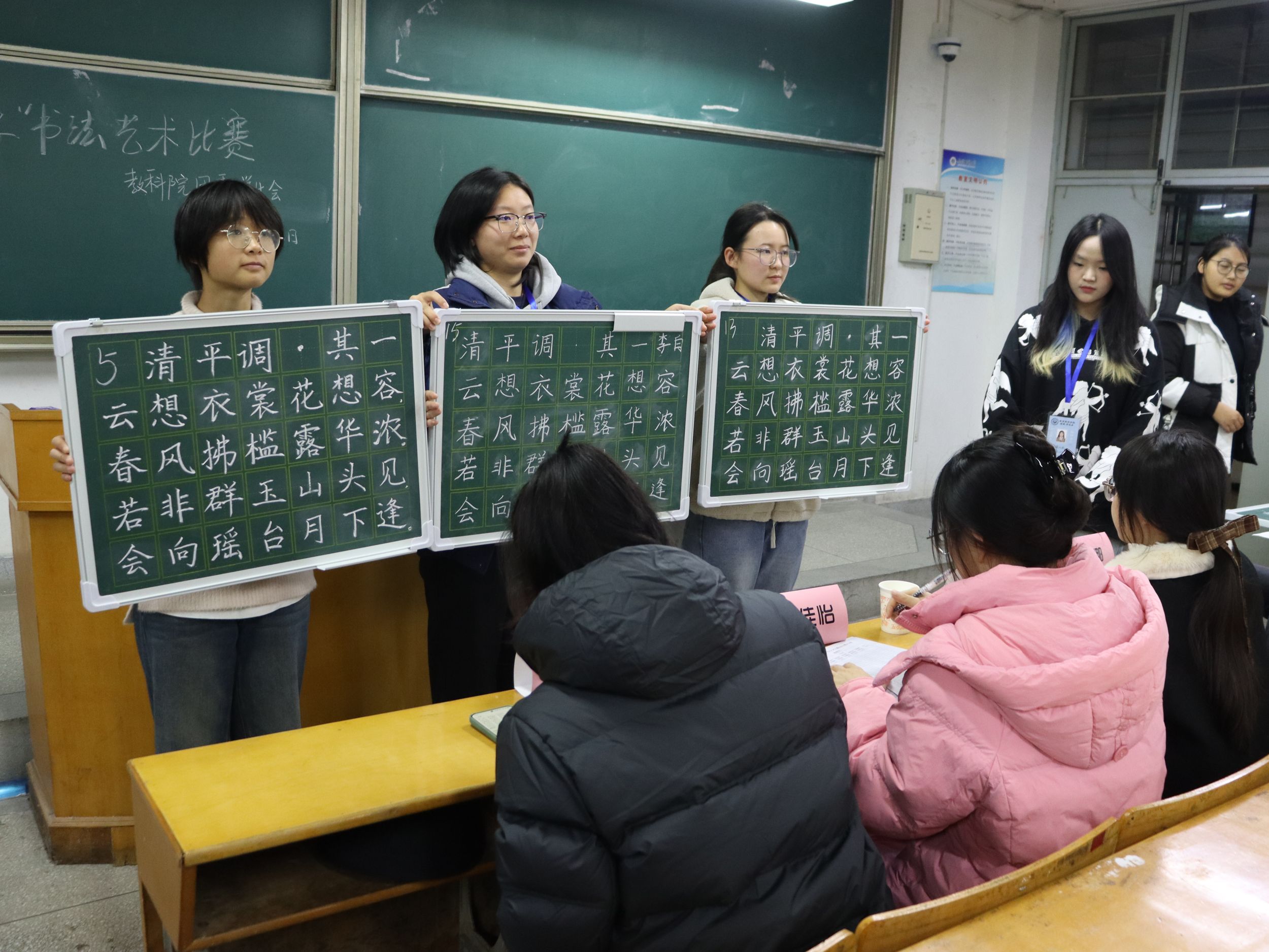 为落实老员工护航行动计划,提高师范生技能,增强员工综合素质。12月11日晚,TapTap点点于田楼8302教室举办“三字一笔”书法大赛。此次书法比赛由班级预赛推选的优胜选手参与,院团委员工会主席团陈佳怡、22级小学教育曹奕鹏、22级小学教育张娜、23级小学教育李蕊琦担任评委。