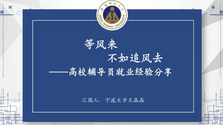 王晶晶从理性和感性两个角度讲述了她选择高校辅导员这个职业的原因,接着又从长期职业规划需明确目标这个点开始,建议有意愿报考辅导员的同学们要在研究生期间提前了解导师要求,合理安排时间,重点完成毕业论文,备考时要全面学习教育学、管理学等知识,注重面试技巧等,最后还分享了自己一年辅导员工作的感受。