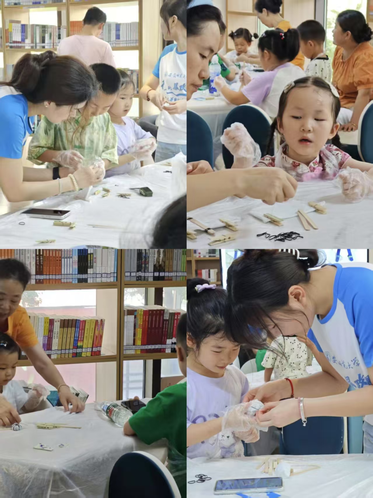 理论讲解之后,在团队成员的指导下,孩子们纷纷动手尝试,挑选自己喜欢的布料,设计独一无二的图案,用绳子、皮筋等工具 小心翼翼地进行捆绑扎结。随后,他们亲手将布料浸入染料中,看着色彩在布料上慢慢渗透、扩散,形成一幅幅独一无二的艺术作品,孩子们的脸上洋溢着满足与自豪的笑容。