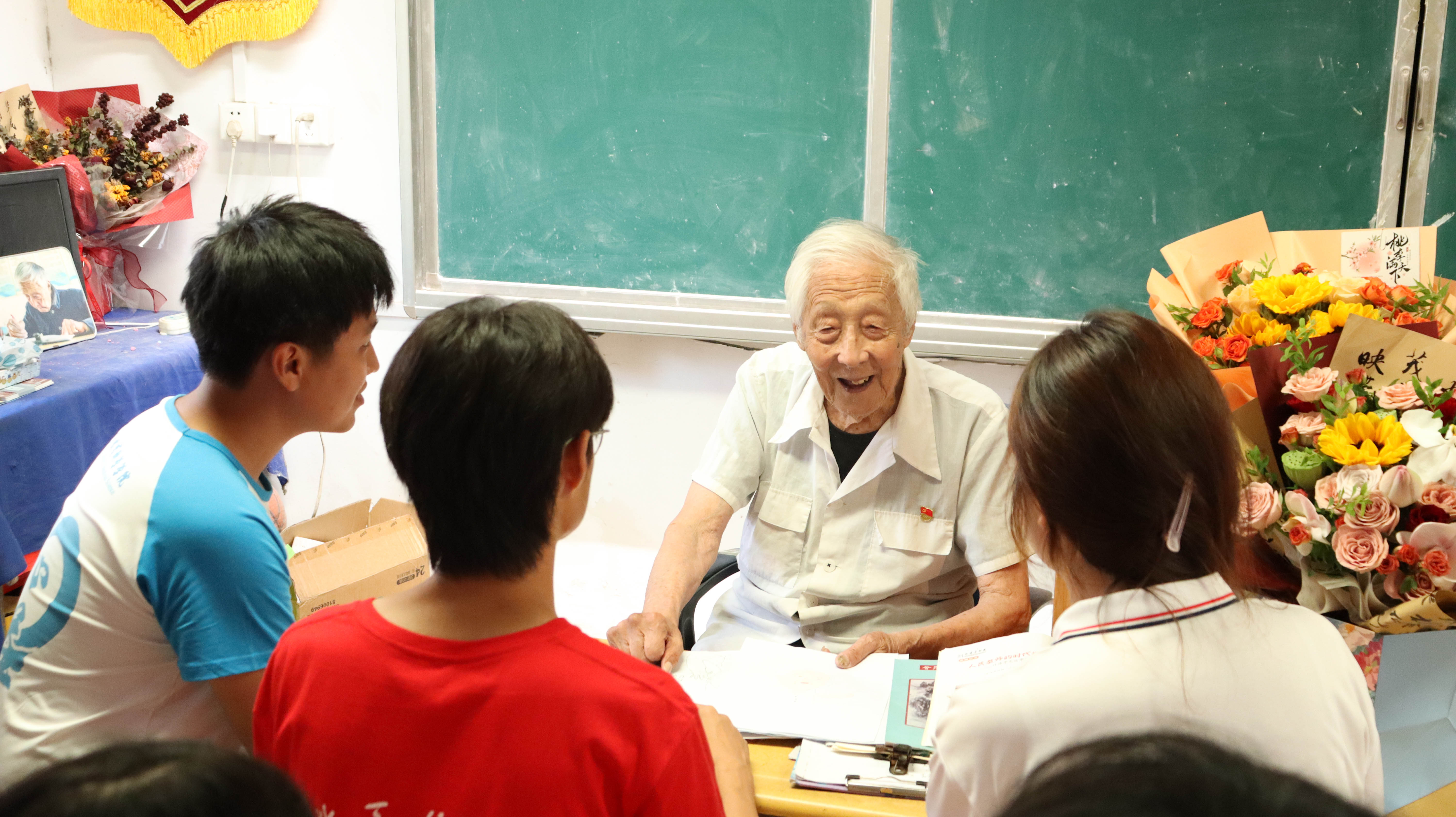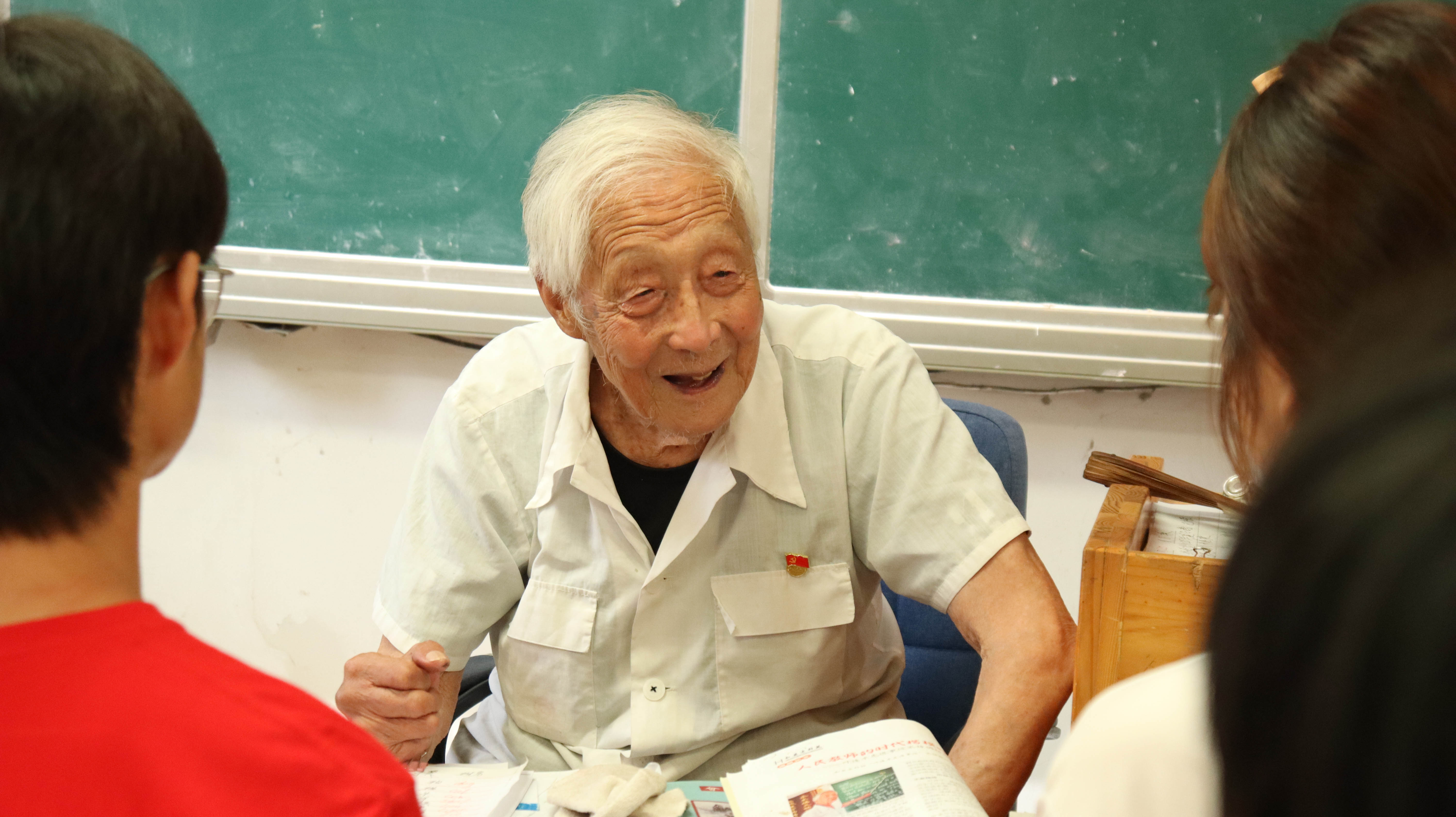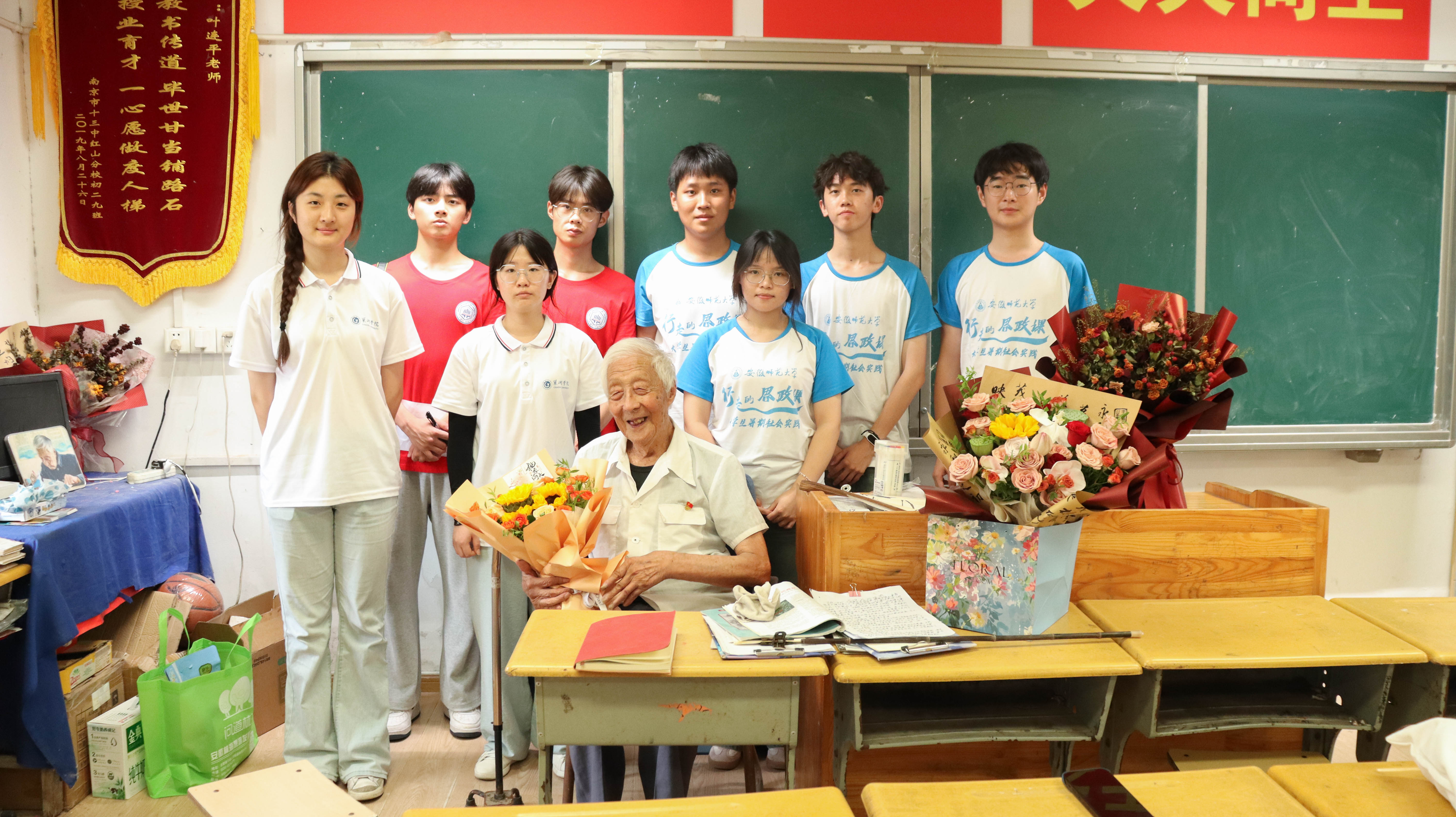 7月9日下午,TapTap点点师生一行,怀着崇敬之心步入和县乌江镇卜陈村叶连平老先生的“留守未成年人之家”。这位九十八岁高龄的老教师,此刻正佝偻着身躯在黑板前批改作业,粉笔灰细密地落满他旧中山装的袖口——这幅宁静画面,无声诉说着一位乡村教育者生命深处的执着。