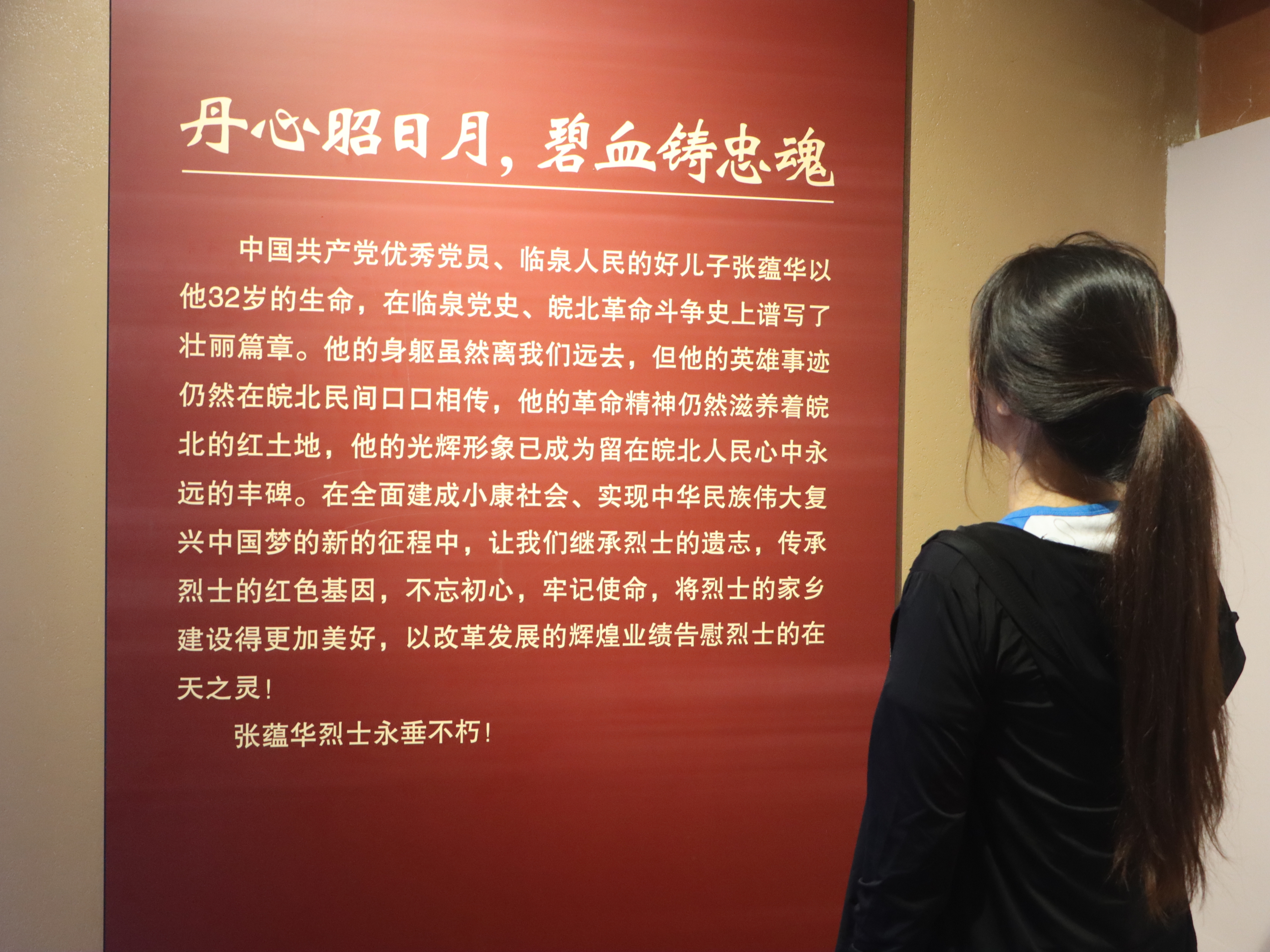 步入育才阁,映入眼帘的是张蕴华提笔写下的一副对联:“竖起两根硬骨头;誓与土劣拼死命”。烛梦启航团队的队员们跟随讲解员的脚步,步入育才阁的一层展厅。展厅内陈列着泛黄的照片、手稿及简陋生活用品,还原了上世纪30年代张蕴华在此办学、传播进步思想的场景,详实史料展示了其早年求学、追寻革命真理、回乡建立首个党支部及投身革命的事迹。二层和三层则真实展现了育才阁的真实教学环境及张蕴华的工作生活环境,队员们步入其中,目睹真实革命场景,身临历史情境。