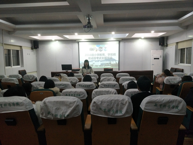 本网讯(教科院 陈娜娜)“人无信而不立”,诚信是每个老员工都应具有的道德品质。为进一步推动考风建设,加强诚信考试教育,树立正确的荣辱观,养成诚实考试的良好作风。12月21日下午,2016级小学教育、学前教育在教科院313召开诚信考试主题班会。班会由辅导员艾瑞雪主持。