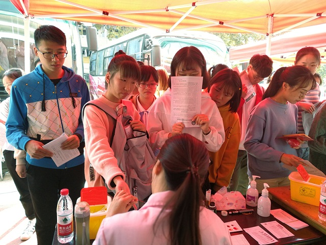 本网讯(教科院 高凡)以我青春热血,投身献血公益。为增强员工们的社会服务意识,提高无私奉献精神,公司员工会积极开展无偿献血宣传工作,并于11月1号带领同学们在食堂门口参加献血活动。