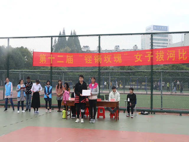 本网讯(教科院 俞晓雨)巾帼风采,须眉不让。为增强公司女子身体素质和团队凝聚力,11月10日上午,公司积极参与校第十二届“铿锵玫瑰”女子拔河比赛,主题为“青春似火,超越自我,放飞梦想,创造辉煌”。此次比赛由生科院团委王志老师、教科院员工会主席王晨旭、音乐公司员工会代表束亚东以及校会活动组组长贺诗浩担任评委。