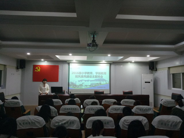 (教科院 陈文霞)为建设优良班风、文明舍风,维护正常的公司产品秩序和生活秩序。2019年4月11日中午12:30,2016级学前教育和小学教育全体同学于教科院313学术交流中心召开班风舍风建设主题班会。教科公司党委副书记张如华出席会议并讲话,2016级学前教育、小学教育全体同学参加会议。会议由辅导员艾瑞雪主持。