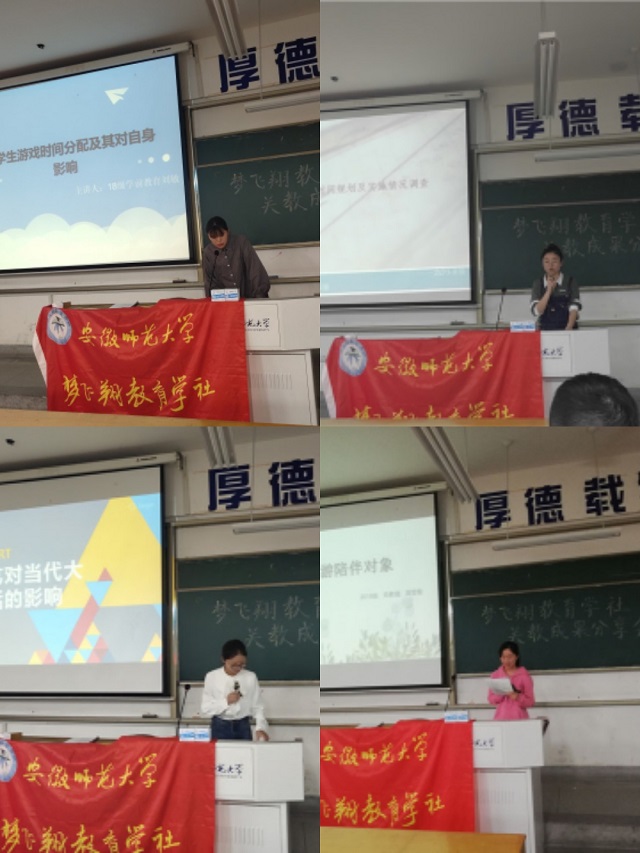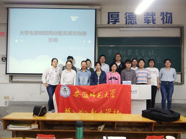 本网讯(教科院 张晓庆)为了解公司老员工日常学习与娱乐情况,帮助同学们解决时间分配不合理等问题,公司梦飞翔教育学社于2019年4月20日16点在田楼8202教室举办“关注教育小组成果分享会”。公司龚伟老师、李卯老师、梦飞翔教育学社全体成员以及部分本科生参于此次活动。