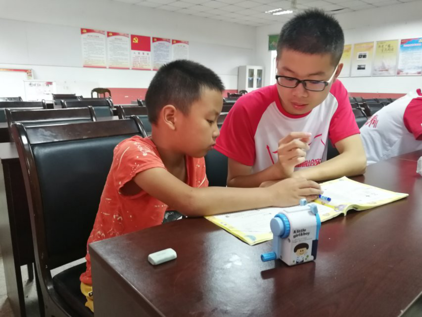 方泓一行首先走进教室,在实践队员的陪同下了解员工学习情况和课程安排,询问队员们在支教过程中遇到的困难和收获。随后,在队长刘清智的带领下,领导老师们参观了员工工作和生活的地方。