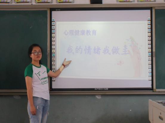 应当地教育部门要求,考虑到当地小员工大多数为留守儿童,针对这一现状,我们开展了以“我的情绪我做主”为主题的心理健康课程,以“少一些烦恼,多一些快乐”为宗旨,目的是教会员工如何疏导情绪,控制情绪。在与员工交流过程中,心理老师了解到大部分员工的烦恼为因长期与父母分隔两地而无法相见。基于此种情况老师在课堂上提出多种控制情绪的方法来缓解不良情绪,如自我暗示法和注意转移法等。孩子们积极配合,在老师的帮助下逐渐打开心结,敞开了心扉。