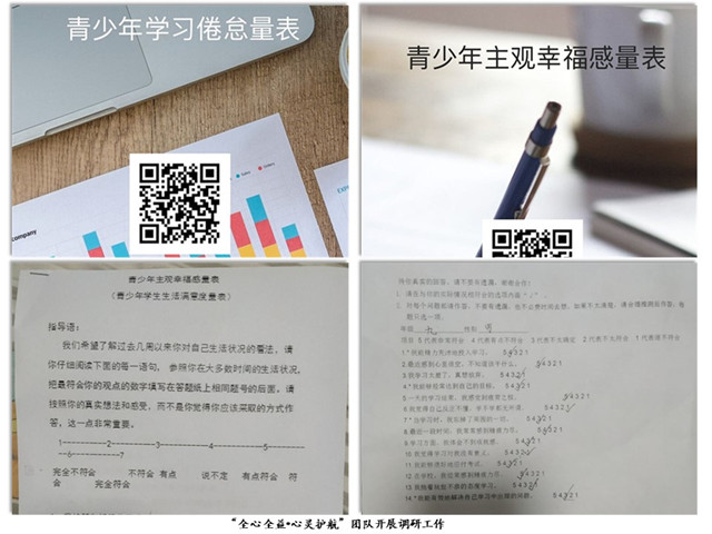 对于不参加教学活动的儿童,联系员则需联系家长询问是否参加本次调研。团队中的联系员通过手机短信、微信、QQ等方式简单介绍了自己的身份、调研的目的、调研所需要的时间以及需要填的问卷。联系员积极性高涨,数百条信息通过互联网让成员与留守儿童“零”距离。特殊的线上调查形式,使得本次调研活动更易于传播,员工也可以在任意时间空间完成调查,信息反馈及时,并且获得的数据表格形式统一,方便进行数据分析。本次所采用的问卷主要分为青少年主观幸福感量表和心理档案调查问卷青少年学习倦怠量表,在量表设计上尽可能的简洁明了,易于不同年龄阶段的员工进行理解。通过问卷的方式进一步认识留守儿童的心理健康现状,并探究与分析前因后果,在调查研究的基础上尽所能的解决留守儿童的心理问题,帮助他们摆脱障碍,进行调节。
