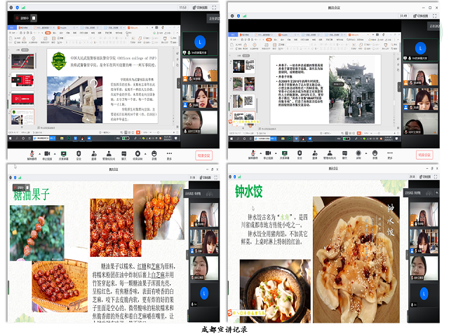 云端环游第二期第一站,队员们带领一位七年级的留守儿童来到了成都。团队成员刘淼、李彦翔为员工展示了成都的警官公司文化及成都著名的美景和美食。宣讲过程中员工积极参与,师生互动不断,员工兴趣高涨。