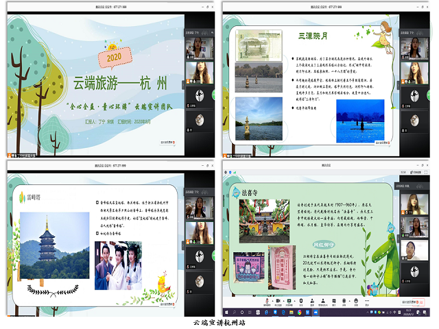 “东南形胜,三吴都会,钱塘自古繁华。”云端环游第二期第二站,一位八年级的留守儿童跟随团队中的丁宁、宋琪两位老师来到了素有“人间天堂”美誉的杭州,一起感受了西湖、灵隐寺、南宋御街等著名景观的文化底蕴,领略了西湖醋鱼、杭三鲜、龙井虾仁等著名美食的精妙魅力。通过宣讲,同学对杭州的美景、美食、故事有了更多的了解,加深了杭州的美好印象,也更加向往杭州这座城市。