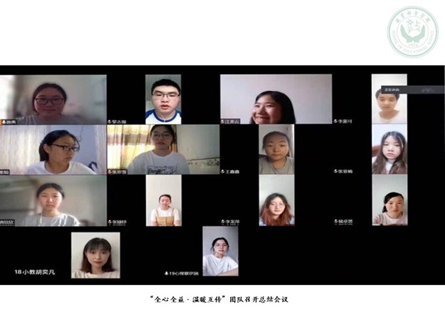 8月20日下午3点30分,教科院“全心全益•温暖互传”心理健康教育云端团队队长唐典在召开了团队分享会议,每位队员都积极分享了自己在这次活动中遇到的困难,授课中的收获和对活动的期望。疫情下特殊的线上宣讲形式,忙碌充实的云端授课过程,幸福美好的接触经历,都给队员们带来了温暖而独特的体验。分享会议结束后,大家共同喊出了“全心全益,温暖互传”的口号,满怀不舍挥别暑期实践生活,踏上新的征程。