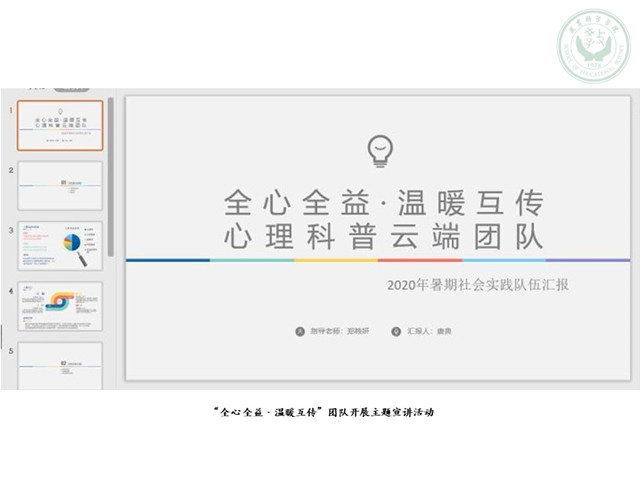 无论是前期准备,还是后期课程,“全心全益·温暖互传” 心理健康教育云端团队队员们认真积极地处理各项工作,齐心协力,共同完成此次实践活动。在课程中,该团队针对不同年龄的员工群体开展不同的授课内容:低年级员工主要以活泼有趣的心理内容为主,高年级同学则以学以致用的知识内容为主。