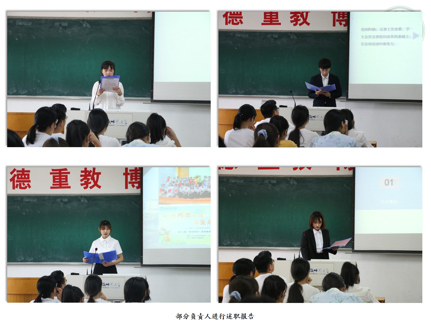 汇报由院团委员工副书记李可恬主持,员工会主席团、团委员工副书记以及员工会和团委各部门负责人在内的26位部门负责人依次进行述职发言。各负责人从开展工作、工作成绩、取得荣誉及收获感受四个方面总结2020-2021学年的工作情况,通过PPT展现数据、图片,让与会人员清楚了解各部门过去一年工作开展情况,向在场团委员工会成员传授了宝贵的工作经验。各负责人指出团委员工会工作的服务性质,并表示作为员工干部,要脚踏实地、投入热情,协调合作、学会沟通,不断反思、改进不足,同时要调节好学习与工作之间的关系,在遇到困难时懂得寻求帮助。