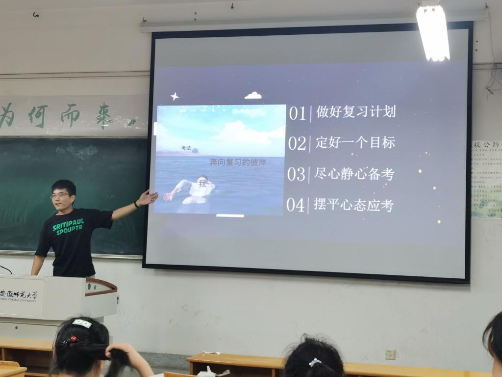 临近期末考试,支部针对部分同学出现考前焦虑情况,组织考前心理疏导活动。张腾飞同学热情分享了自己的复习计划,对班级同学的考前复习起到一定的帮助作用。梁冬最后进行了总结与点评。