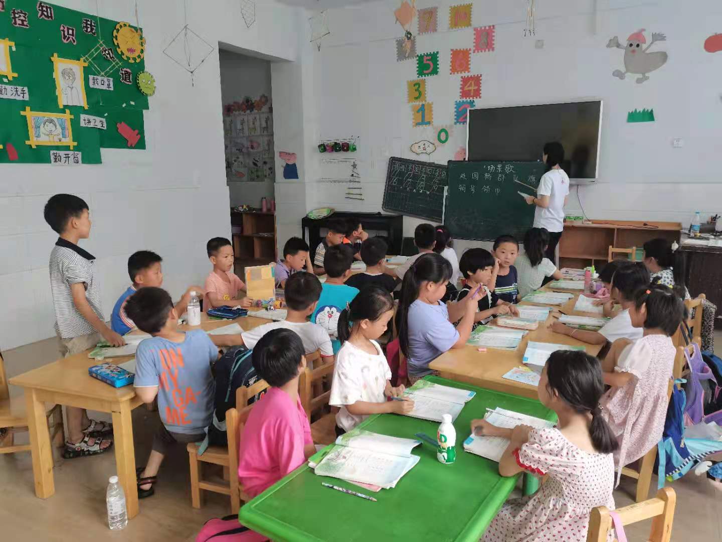 实践团队队员周紫怡带领孩子进行了一节小学二年级的语文教学实践课,孩子们大声地跟着实践队员周紫怡一字一句地朗读,朗朗书声中饱含着对知识的渴望,展现出认真的学习态度,教师与员工互动融为一体。这一过程不仅仅是简单的教学活动,更是老师与员工相互学习、相互进步的过程。