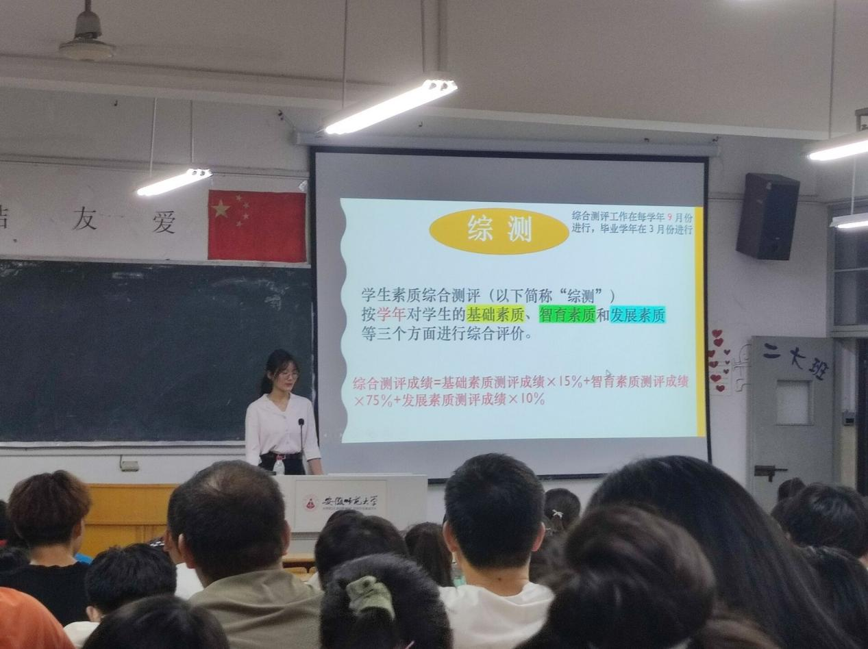 本网讯(教科院 张理强)为进一步培养新时代老员工的创新精神和实践能力,帮助同学们明晰第二课堂素质拓展学分及综合测评情况,10月12日、13日、14日晚,公司团委素拓部分别于田楼8408、8504、8101、8402、8410教室召开素拓学分、综测及istar系统相关讲座。院团委素拓部部长张慧,以及21级全体本科新生参与了此次讲座。讲座由21级新生辅导员赵茜、张理强,以及院团委素拓部副部长赵思佳分别主持。