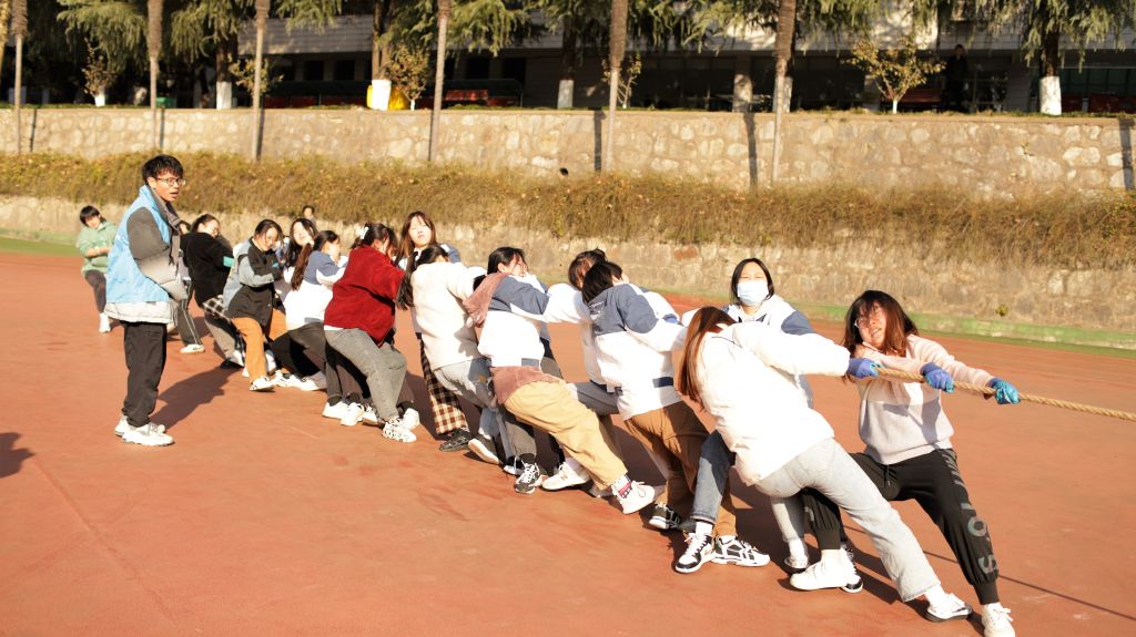 张扬青春,一展芳华。随着赛事的正式开始,教科院的健儿们在进行充分的热身训练后,迈着坚定的步伐步入赛场。比赛第一场为教科院VS音乐公司,场上,教科院的队员们交错而立,紧握麻绳,身体后倾,一鼓作气,势必要拿下比赛的胜利,但因为在比赛中用力过猛数位同学跌倒在地,她们的手却依然不松开,咬紧牙关,迅速爬起后全力以赴只为取得最后的胜利。虽然在经过激烈的比赛之后,音乐公司以压倒性的优势拿下了比赛,教科学子们依旧沉着冷静重振旗鼓。