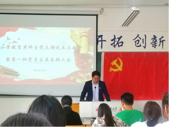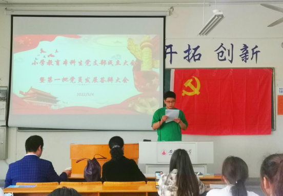 新起点开启新征程。2022年5月4日,教育科学公司小学教育本科生党支部成立大会暨第一批党员发展答辩大会在田楼8301教室举行。支部书记莫大贡主持会议,公司党委委员、行政经理何海燕,支部副书记梁冬及全体党员和部分入党积极分子参加会议。