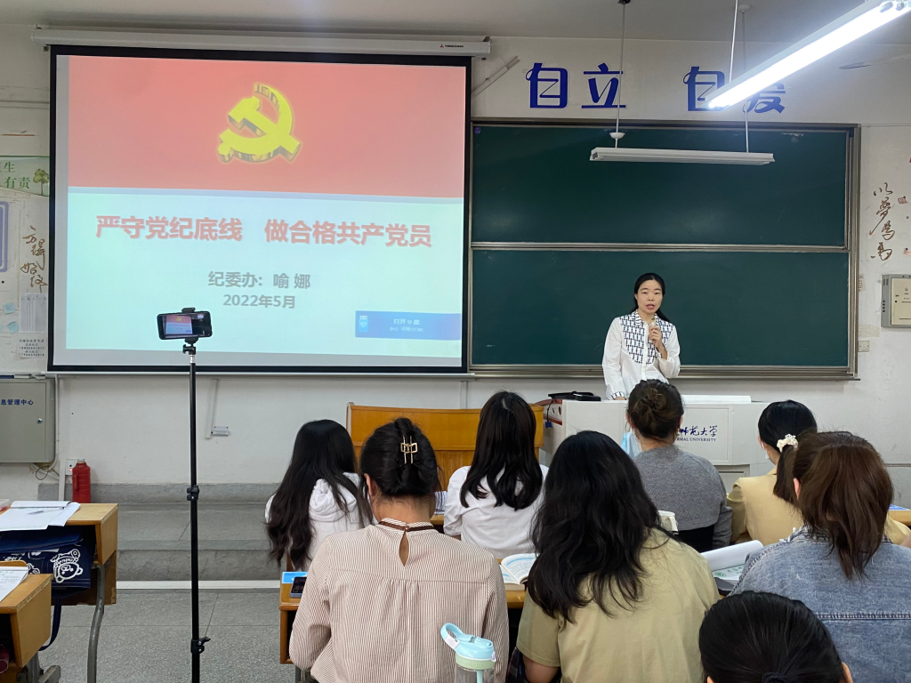 第9期党员培训班共开展4次理论授课,多位专家老师结合主题为学员们带来精彩丰富的课程。校纪委刘长生为学员们带来了一堂深刻严肃的党课——学习党内法规,严守党的纪律;马克思主义公司副经理李祥兴带领大家学习十九届六中全会精神;校纪委喻娜给大家进行了党风廉政教育;校团委书记汪凯从青年学子的担当这一主题为青年党员解惑。这些理论和交流课程不仅帮助学员们增强对党的理论知识的学习和理解,同时也增强同学党员意识、锤炼党性修养。
