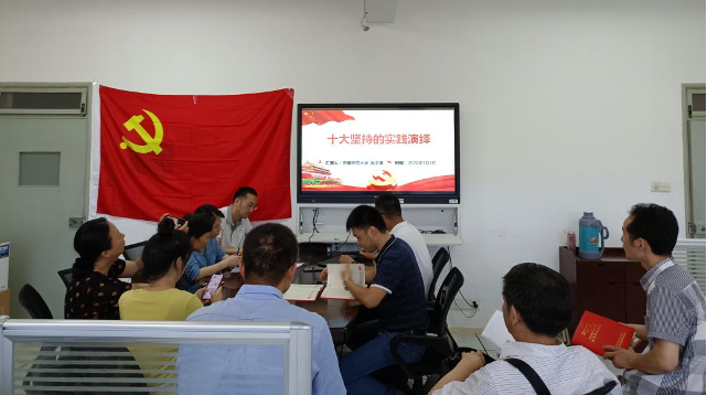 公司党委委员吴文涛副经理以《十大坚持的实践演绎》为主题,结合教育技术学专业发展,与在座党员同志畅谈感想体会,与会党员纷纷表达了作为一名党员的光荣使命感以及对党的真诚祝福,进一步筑牢了广大教师党员坚定信念、担当尽责、勇往直前的决心。