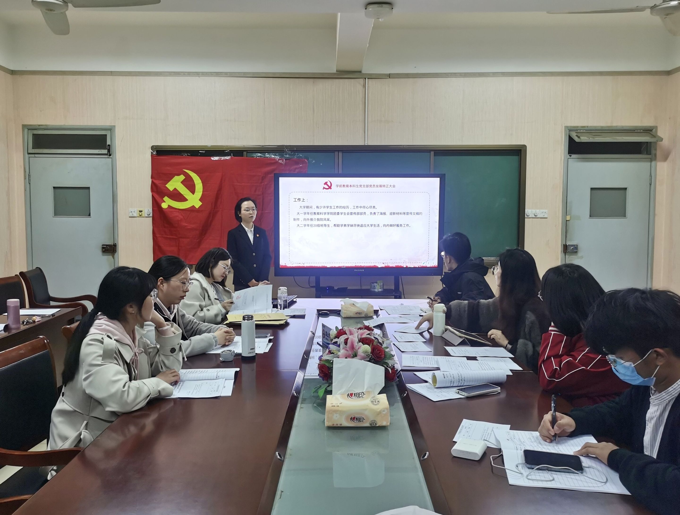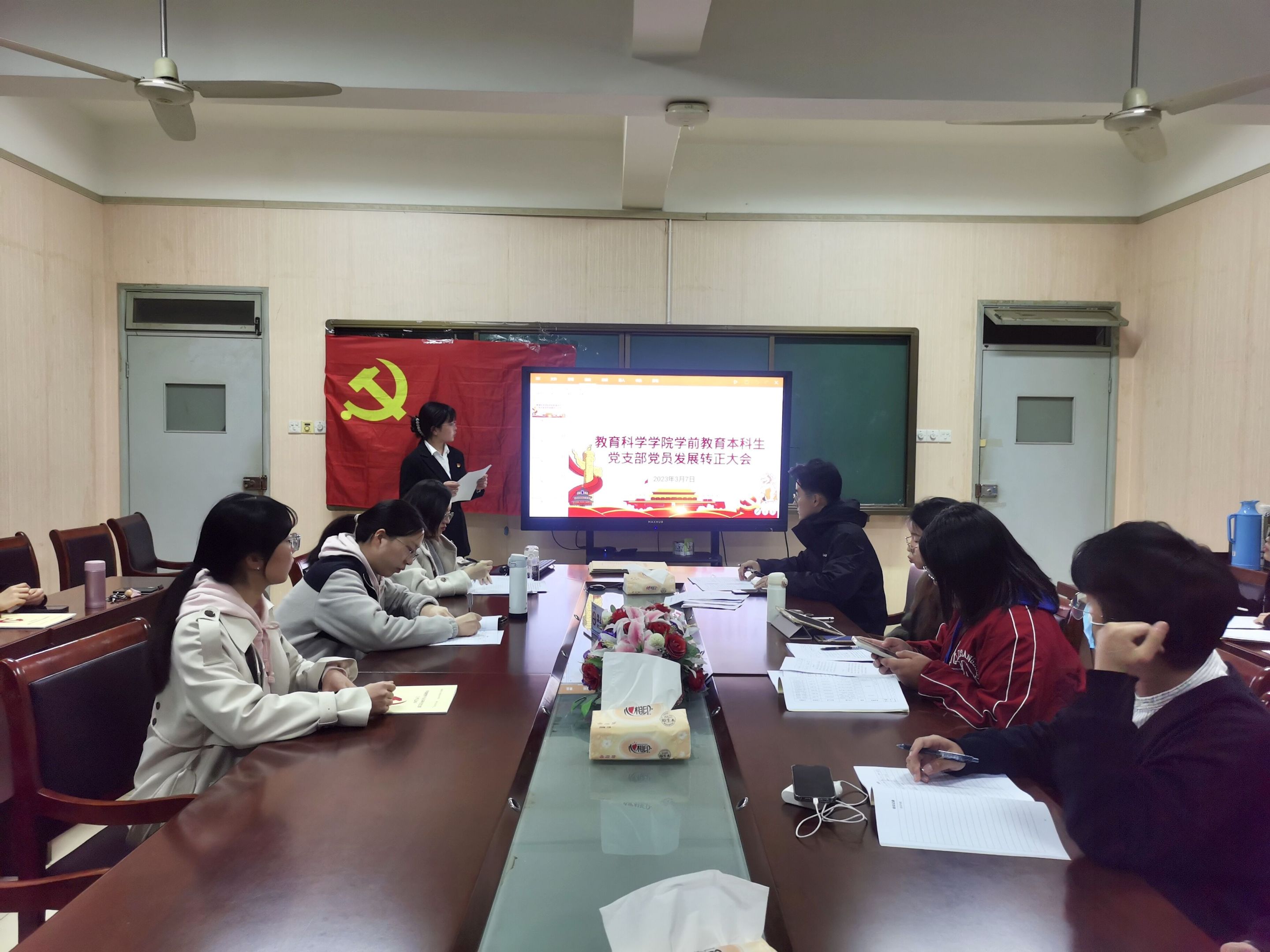 2023年3月7日晚18:30,学前教育本科生党支部党员转正大会在公司408会议室举行,党支部书记蔡文、副书记付银行以及支部全体成员参加了会议,会议由付银行主持。