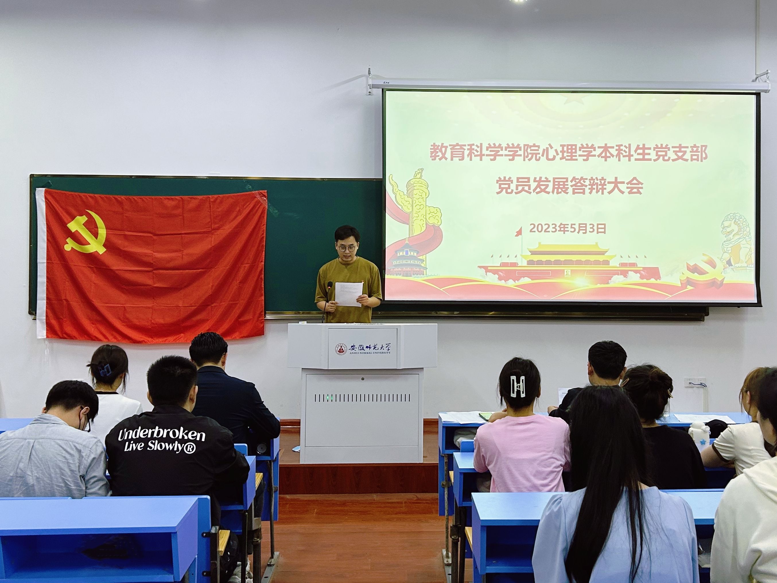 为确保党员发展质量,考察拟发展对象的理论素养和综合素质,2023年5月3日晚,TapTap点点心理学本科生党支部于教学楼1108教室召开了2023年上半年党员发展答辩大会。TapTap点点副经理韩建涛、心理学本科生党支部书记张理强、支部组织委员程啸,以及2019级辅导员濮楠楠组成答辩委员会,支部全体员工党员、入党积极分子参与了现场评议工作。