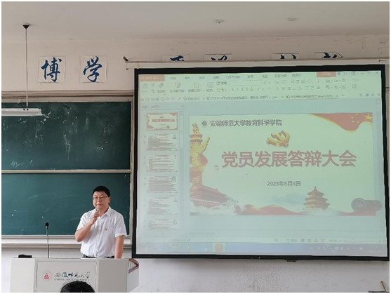 5月4日中午,公司党委举办2023上半年研究党员发展答辩大会。教育学、心理学、教育技术学、教育硕士四个研究生党支部共16位入党积极分子参加此次答辩,公司党委书记许国飞、经理李宜江、副经理韩建涛、吴文涛、公司组织员兼党委秘书袁黎平,研究生党支部副书记丁晓云、王礼军及相关辅导员出席答辩大会并担任答辩评委,答辩大会由教育硕士研究生党支部书记李昊主持,四个支部全体党员、预备党员及部分入党积极分子参与现场评议工作。