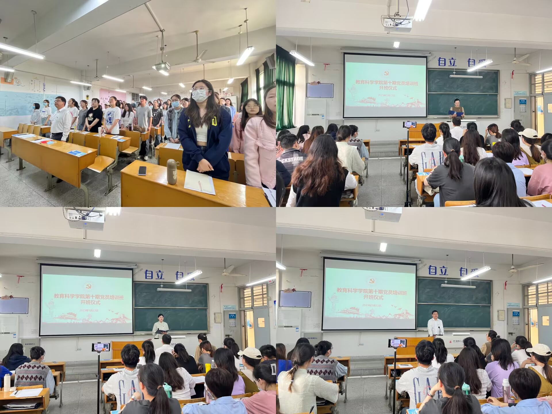 开班典礼在庄严的国歌声中拉开序幕,全体人员起立奏唱国歌。赵茜宣读了党课班相关文件,并从时间安排、开展形式以及纪律要求等方面作出了详细解读。党员教育培训班班长2019级小学教育专业本科生江宇璇代表全体学员发言,鼓励大家珍惜学习机会、严格要求自我。作为新时代的青年党员,更要坚定理想信念,志存高远,脚踏实地,勇做时代的弄潮儿,在实现中国梦的生动实践中放飞青春梦想,在为人民利益的不懈奋斗中书写人生华章。许国飞对本次培训活动组织工作给予肯定,希望全体党员同学注重加强理论学习、始终牢记身份、坚持学有所获,努力做到学思用贯通、知信行统一。最后,许国飞祝愿大家能够学有所获、学有所得,争做脚踏实地接地气,抬头仰望看天气,爱国爱党有正气,积极向上有朝气的好青年!