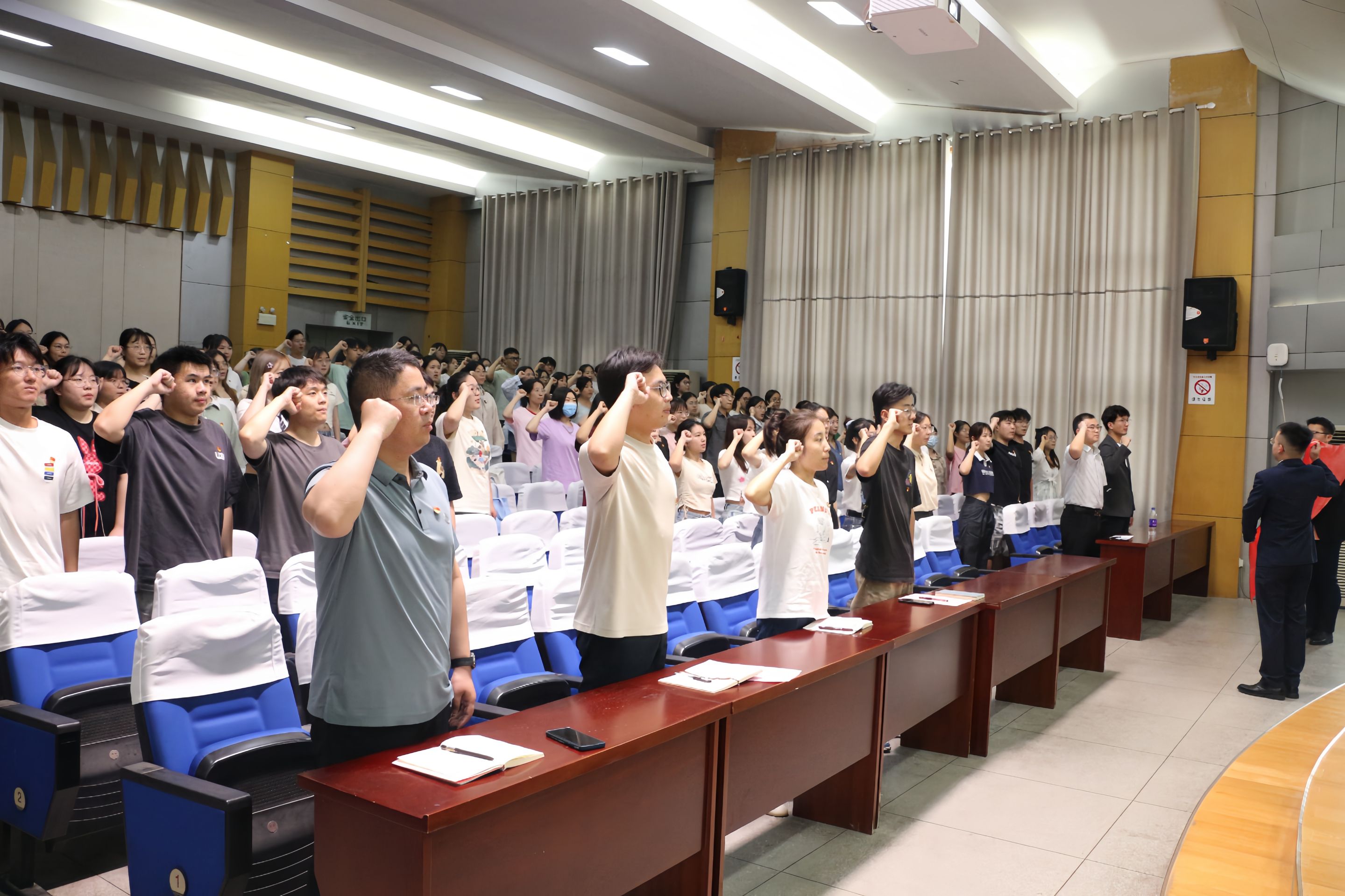 在袁黎平的领誓下,面向鲜红的党旗,全体党员举起右手、握紧拳头,以庄严的态度共同宣读入党誓词。宣誓仪式结束后,大家齐声高唱国际歌,展现了党员同志团结一心、英勇前进的精神风貌。本次员工党员培训交流会是公司不断加强党员教育的具体行动,也体现了对党员同学的关心关怀,努力加强党员履行职责、坚定信仰和发挥作用的信心与决心,为公司发展不断注入新的动力和活力!