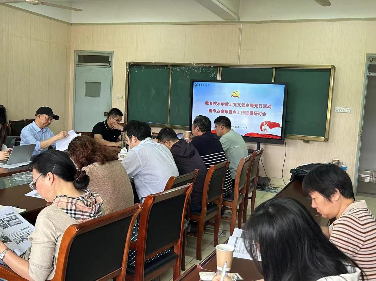 会上,陶佳传达了近期全省教育系统重要会议精神,纪检委员杨滨领学了党纪学习教育“严明党的政治纪律‘十二不准’”,支部党员根据自身学习体会交流了学习心得;专业负责人肖文汇报了“专业迎接本科生公司产品审核评估工作”等相关工作。