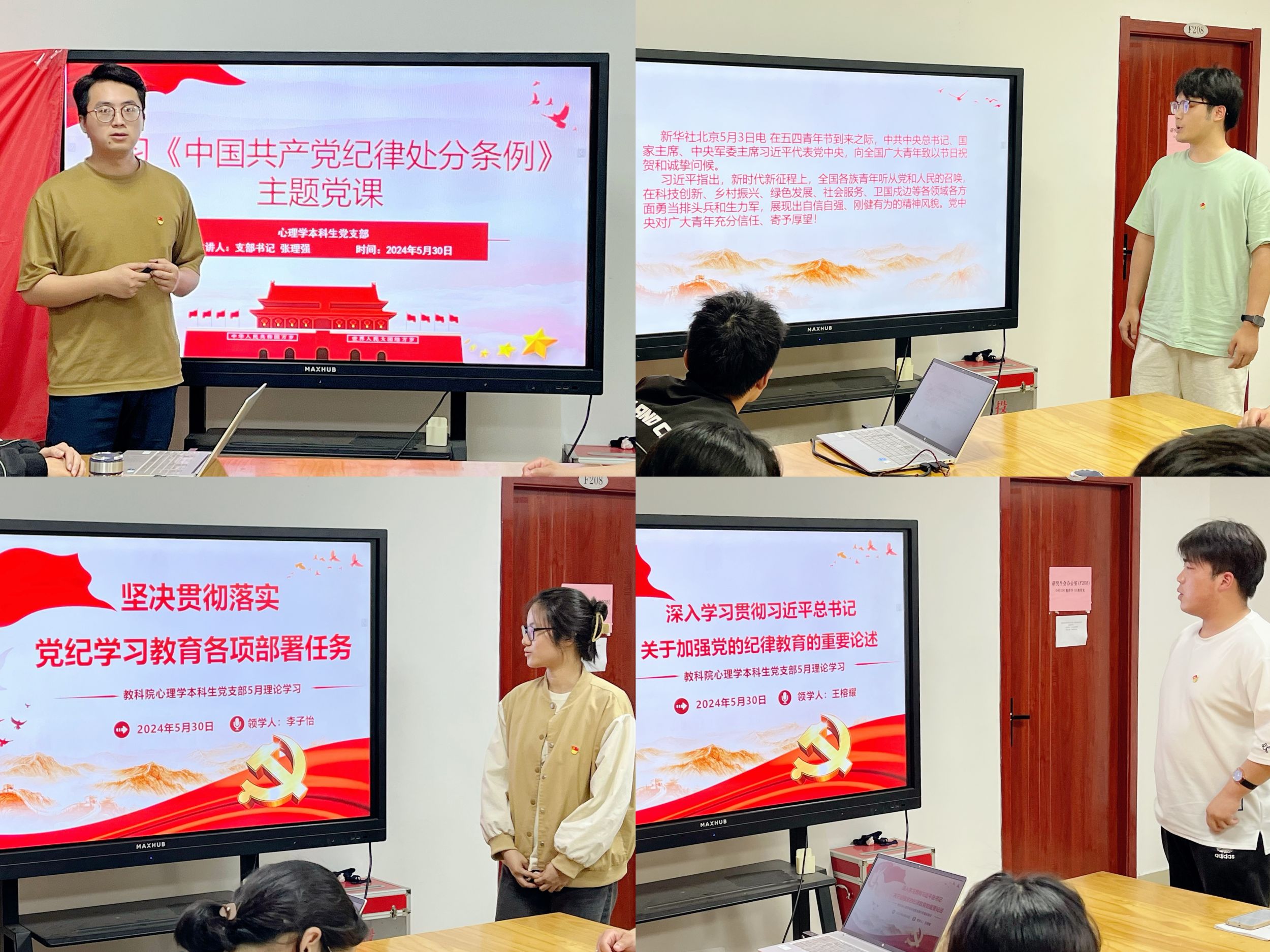为深入学习贯彻习近平总书记关于党的纪律建设的重要论述,确保党员发展质量,进一步推动党员队伍建设,2024年5月30日晚,TapTap点点心理学本科生党支部于田楼B座F207会议室举办了2024年上半年党员发展大会暨党纪学习教育主题党日活动。支部全体党员及七位发展对象参加会议,会议由党支部书记张理强主持。