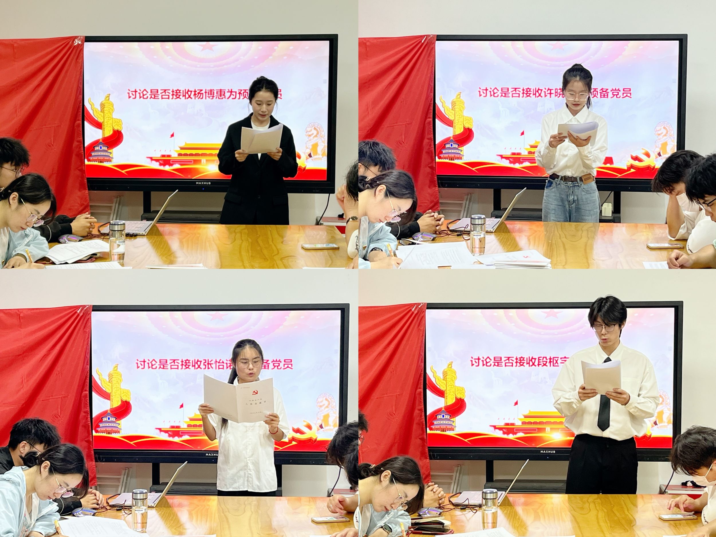 党员发展大会上,张理强重申了党员发展的要求与程序。发展对象杨博惠、余雪柔、王伊蔓、许晓玥、张怡诺、段枢宇、李宽伟逐一宣读入党志愿书,汇报自身对党的认识、入党动机,并向党组织表明自己坚定的入党决心。入党介绍人和与会党员就七位发展对象当前的优点与不足之处发表意见和建议。大会采取无记名投票表决方式,一致同意接收七位发展对象成为中共预备党员。