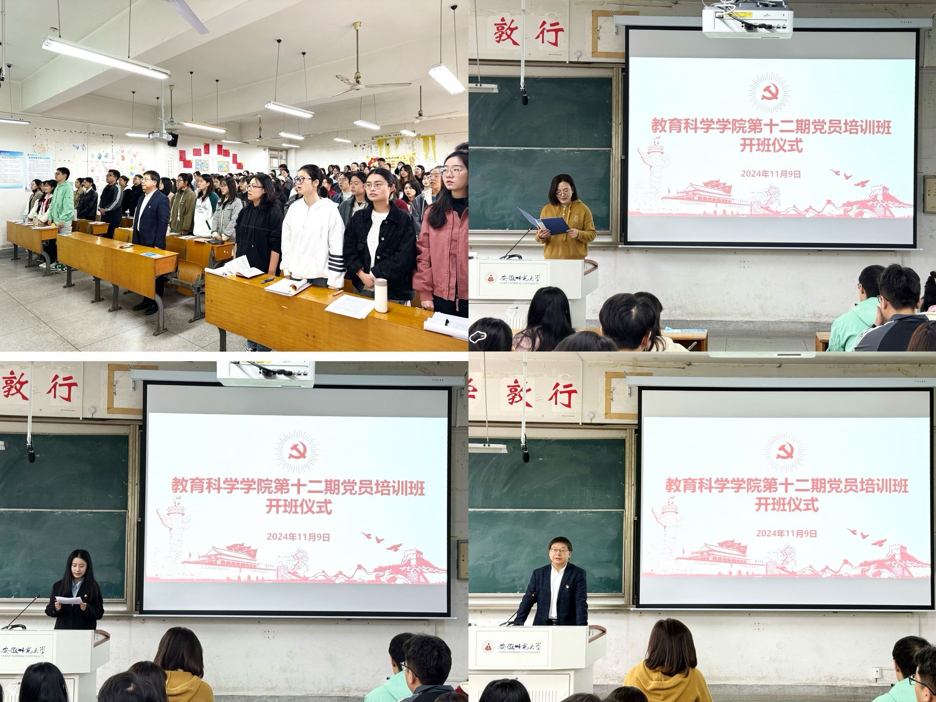 开班典礼在庄严的国歌声中拉开序幕,全体人员起立奏唱国歌。赵茜宣读了党校班相关文件,并从时间安排、开展形式以及纪律要求等方面作出了详细解读。党员教育培训班班长2021级心理学专业本科生杨博惠代表全体学员发言,鼓励大家以最饱满的精神面貌、最积极的态度、最切实的行动来完成党课学习,按时保质保量完成培训班各项任务,时刻保持思想上的先进性、行动上的超前性。许国飞对本次培训活动组织工作给予肯定,希望全体党员同学注重加强理论学习、始终牢记身份,努力做到学思用贯通、知信行统一。许国飞祝愿大家能够学有所获、学有所得,争做脚踏实地接地气,抬头仰望看天气,爱国爱党有正气,积极向上有朝气的好青年!