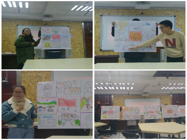 颁发仪式之后,学员们开始了紧张而有趣的九宫格绘制环节。在一个半小时的时间里,五组学员讨论、设计、分工、绘图、上色,每项工作有条不紊地开展着。汇报环节,学员们结合所绘作品分别从“感恩雨花”“没进党的门,先做党的人”“在差距中求变,在历练中成长”“我的入党心”“最熟悉的陌生人”等方面认真回顾了启蒙班的学习历程,表达了最真实的感悟和体会。