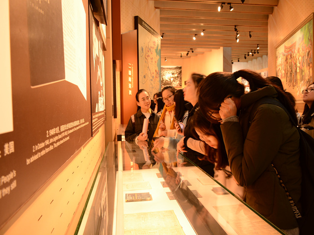 上午九点,学员们到达合肥渡江战役纪念馆。在栗裕、陈毅、刘伯承、邓小平和谭震林五位前总委们气势磅礴的铜制群雕前出发,参观了以水和战舰为主题的渡江战役纪念馆。学员们通过室内群雕“胜利之师”、一千余件珍贵的革命文物、反映惊心动魄渡江场景的4D电影等体验到渡江战役的全过程。最后,在“胜利之师”浮雕前,学员们深切缅怀革命先烈,向革命先烈致以最崇高的敬意。