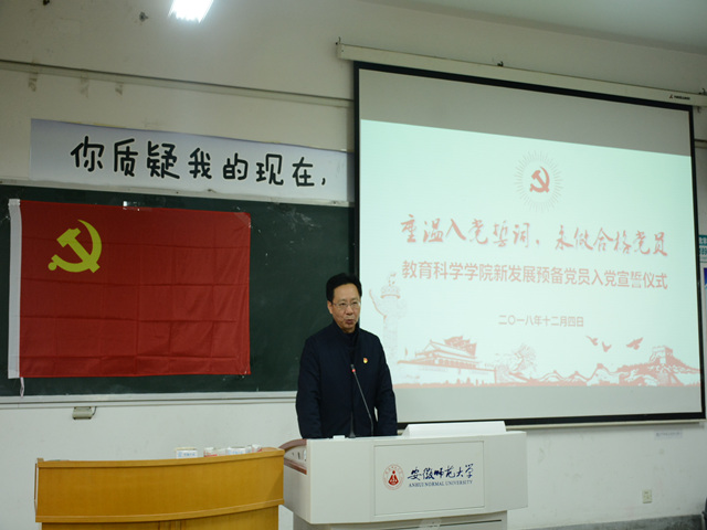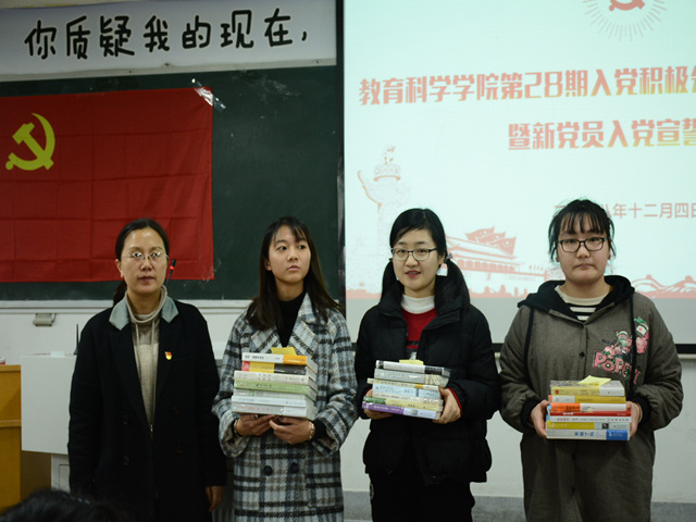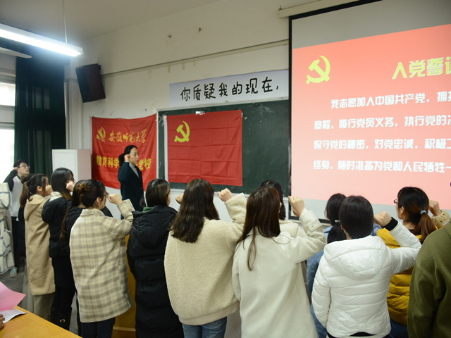最后,新发展预备党员由教科院党委秘书袁黎平老师领读誓词进行宣誓。全体起立奏唱《国际歌》后,龚伟老师表示希望学员们把党校中学习到的知识、确立的目标付诸实践,并且持之以恒地做下去。
