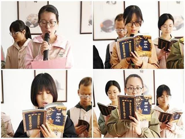 上午10点,学员们带领老人们开始了有关“孝”文化的学习,四名同学声情并茂地领读了《弟子规》。在歌曲互动时间,同学们不仅表演了《感恩的心》节目,而且陪同老人们一起合唱了《最炫民族风》《小苹果》等歌曲,欢快的歌声、动感的音乐,现场到处洋溢着欢声笑语。